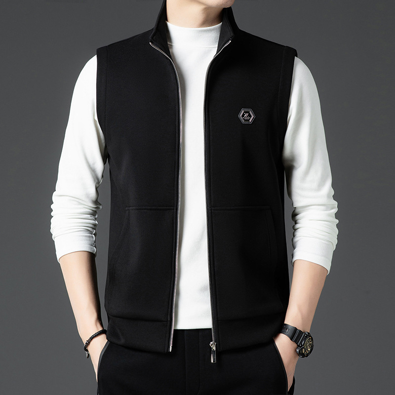 봄과 가을 캐주얼 조끼 남성용 수직 칼라 패셔너블 심플 조끼 젊고 중년의 민소매 조끼 남성용 카디건