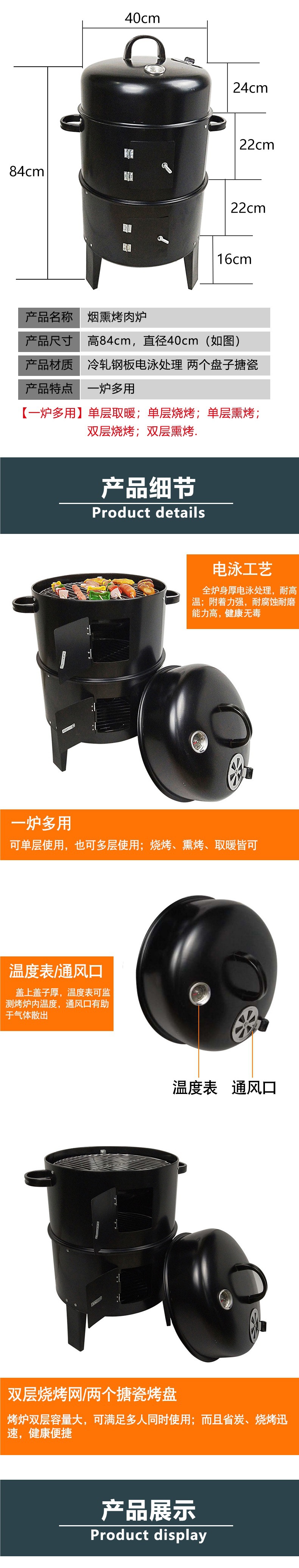 구운 고구마 스토브 라운드 스토브 요리 차 바베큐 숯 가정용 연기 오븐 야외 로스트 베이컨 더블 레이어 그릴 실내스토어 가기