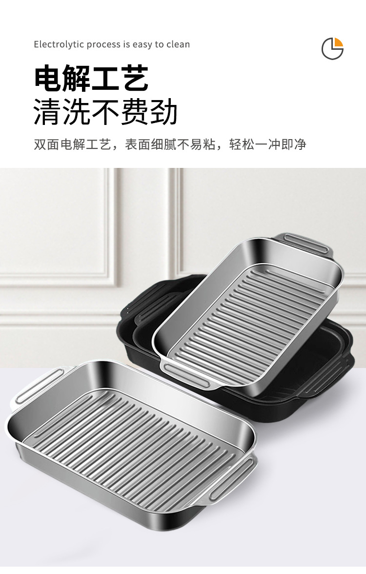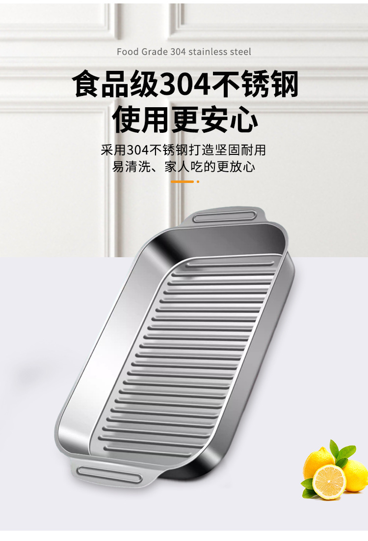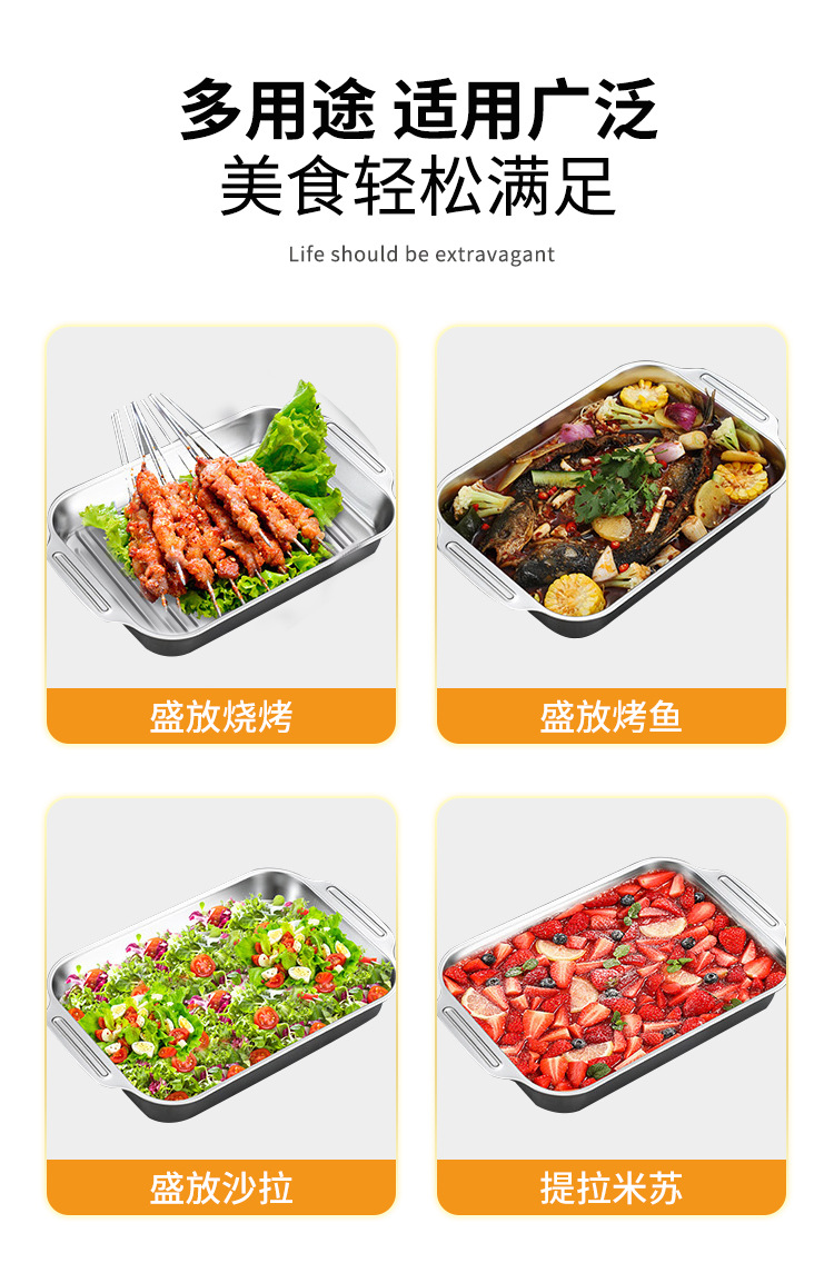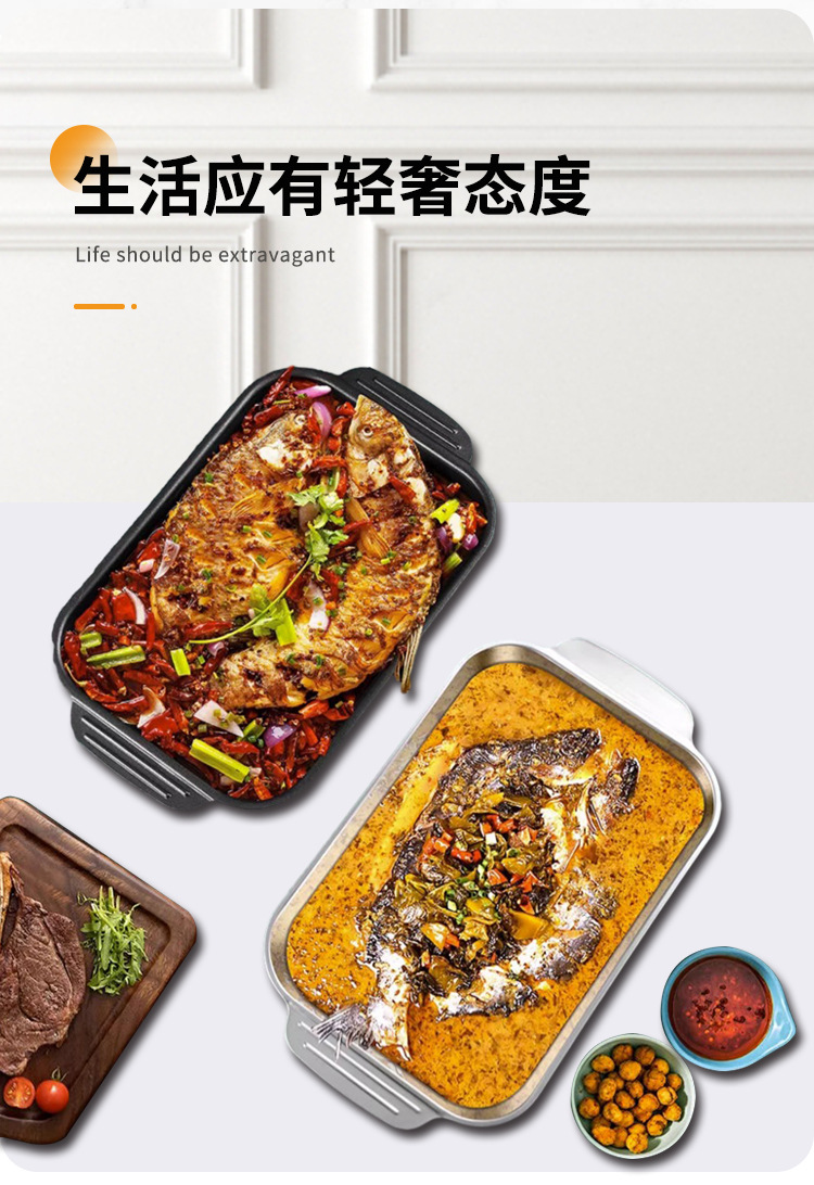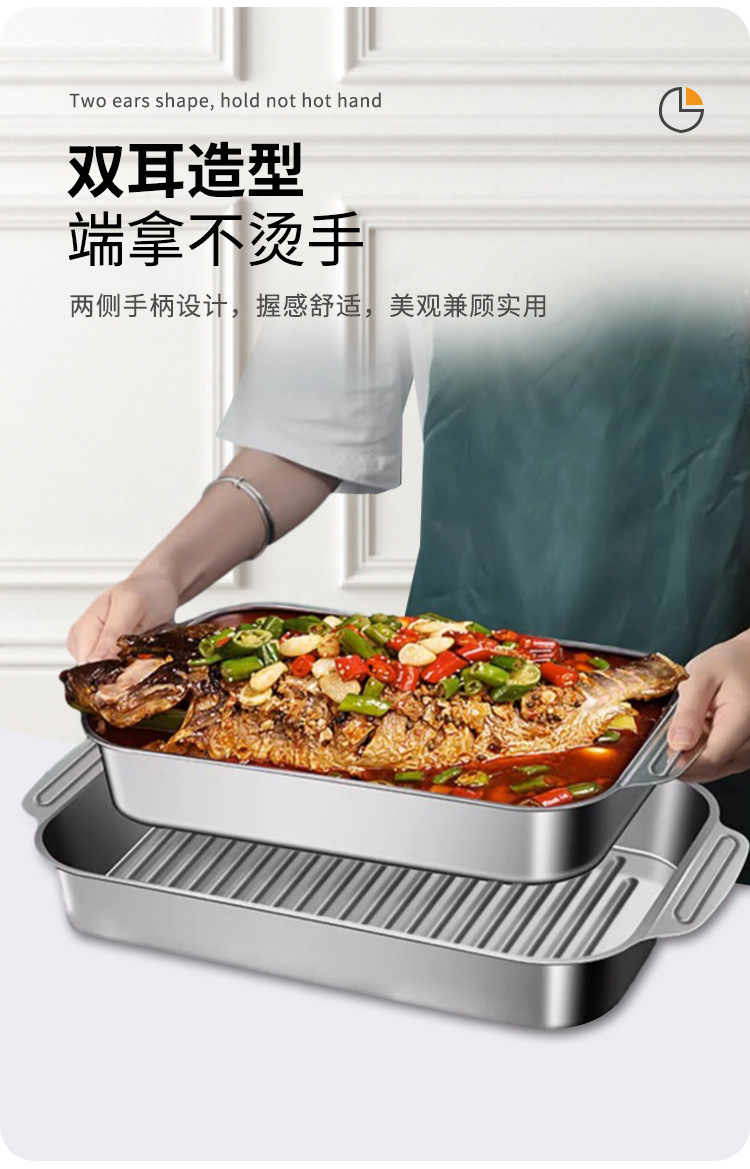 304 스테인레스 스틸 두껍게 구운 생선 플레이트 상업용 직사각형 컨캐브 볼록 베이킹 플레이트 트레이 황금 만두 플레이트 접시 접시 접시 쌀 플레이트