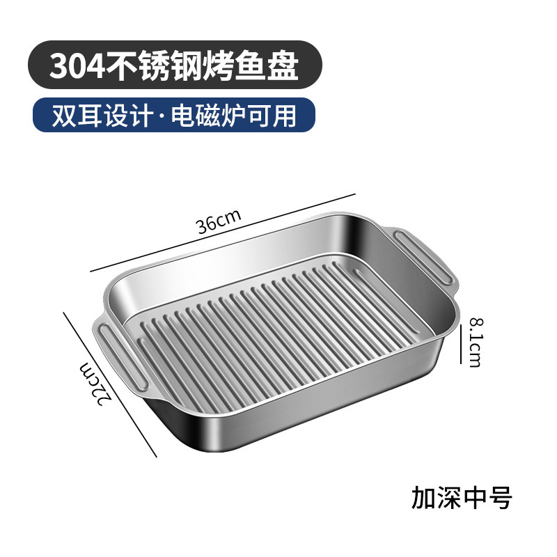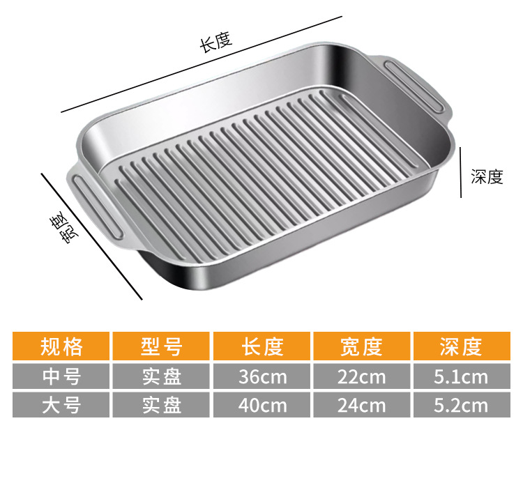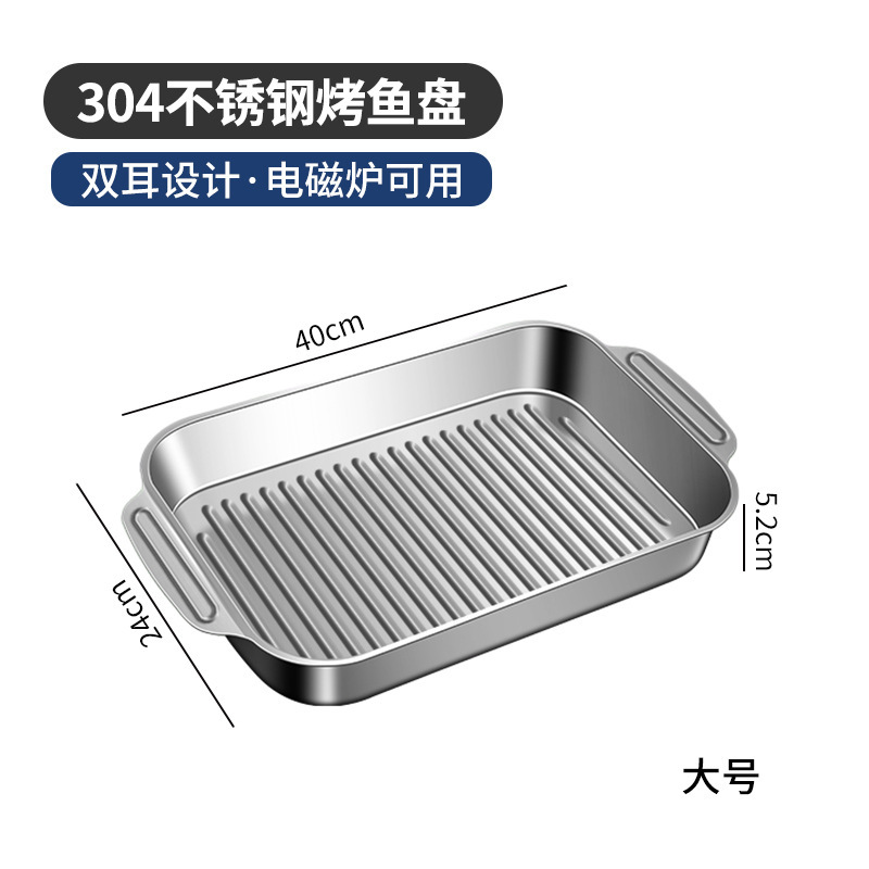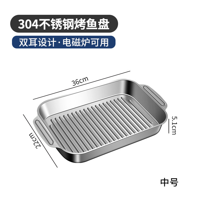 304 스테인레스 스틸 두껍게 구운 생선 플레이트 상업용 직사각형 컨캐브 볼록 베이킹 플레이트 트레이 황금 만두 플레이트 접시 접시 접시 쌀 플레이트스토어 가기