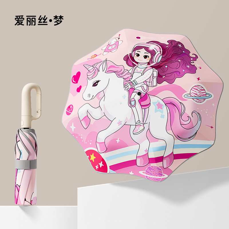 어린이용 손잡이 우산, 안전한 접이식 우산, 여학생 초등학생 통학용 특수 우산, 큰 아이들을 위한 자외선 차단 우산