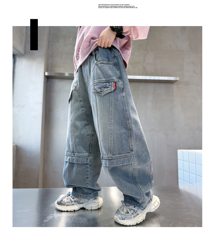 소년의 봄 맞는 청바지 2025 봄 새로운 어린이 하이 퀄리티 공예 유행 어린이 바지스토어 가기