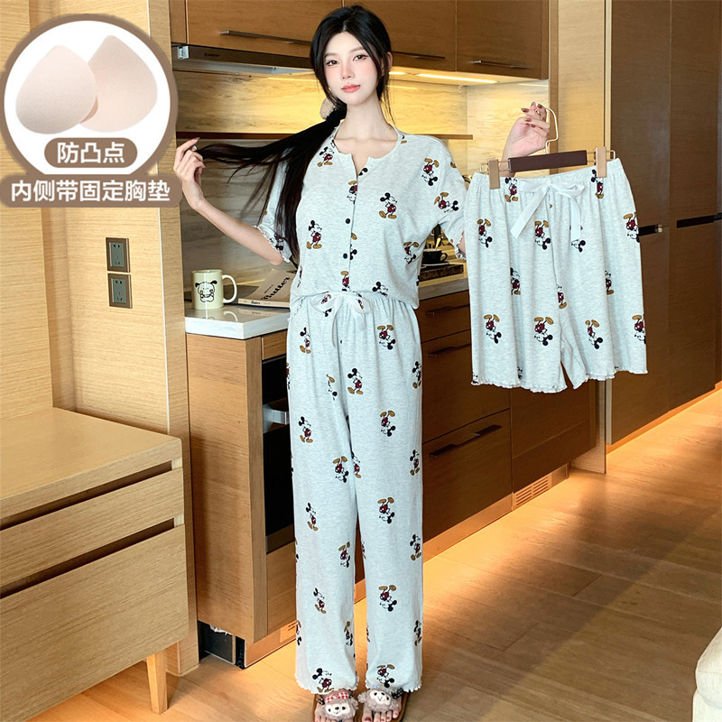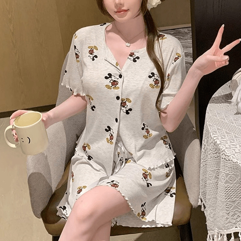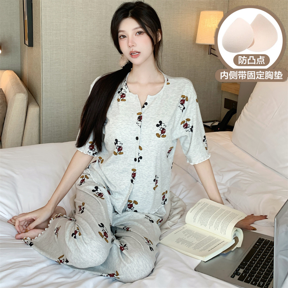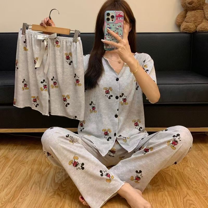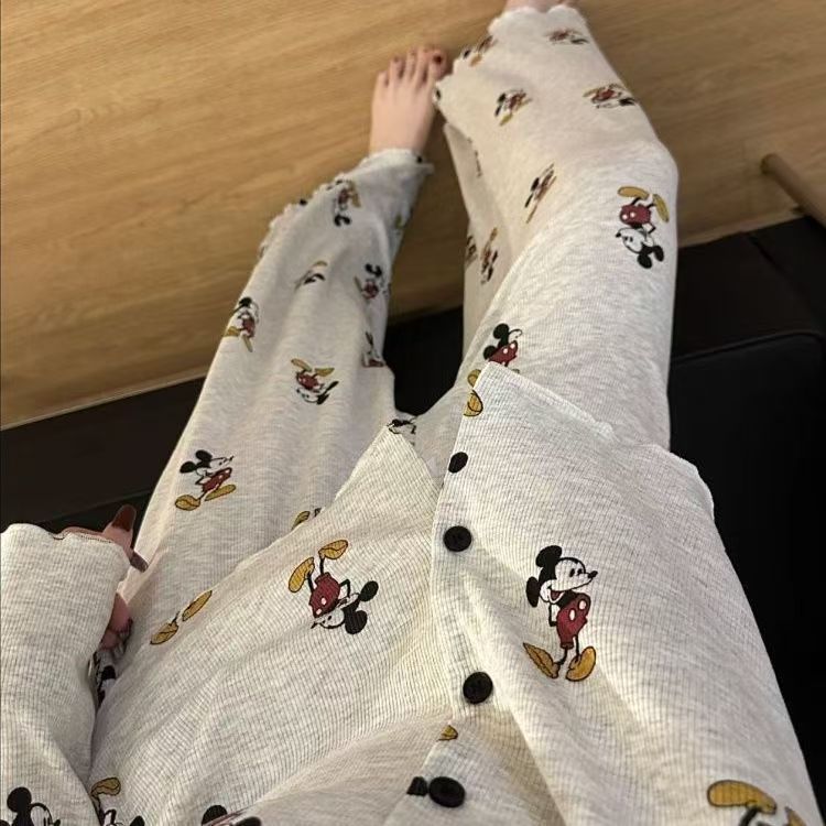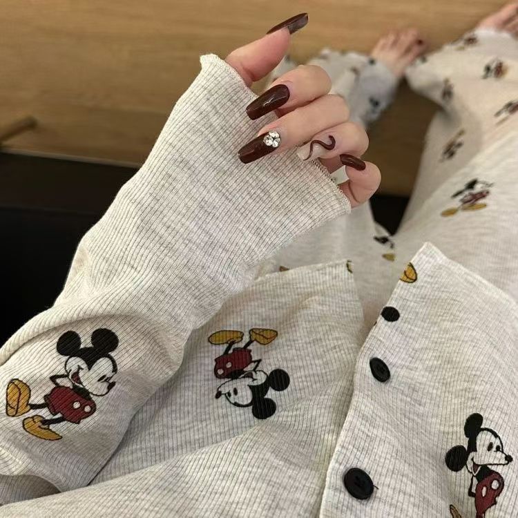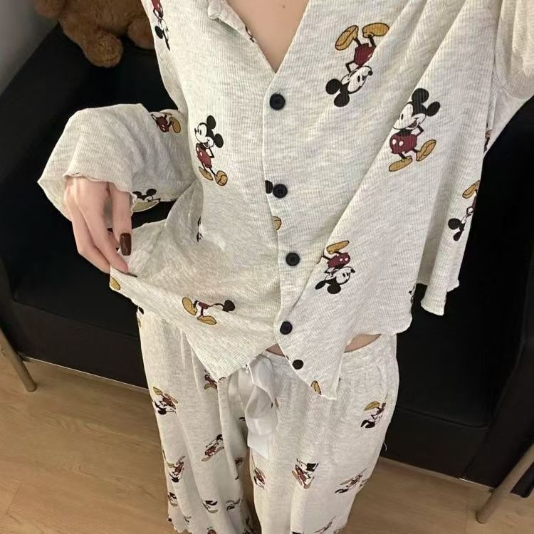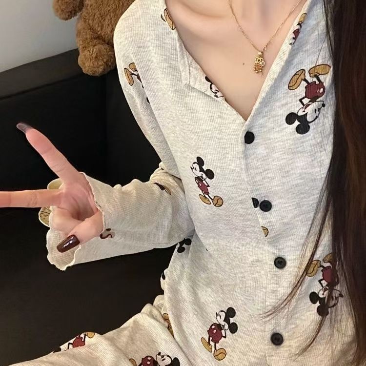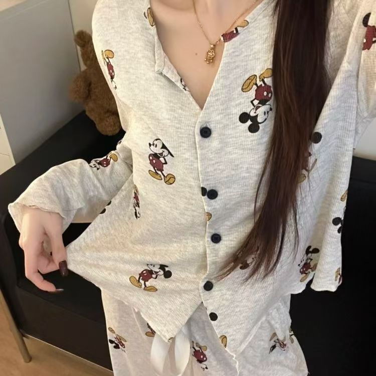 귀여운 만화 미키 잠옷 여성의 봄과 가을 긴 소매 2025 새로운 통통녀 플러스 사이즈 200kg 가정용 의류 세트스토어 가기