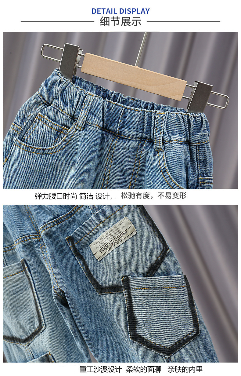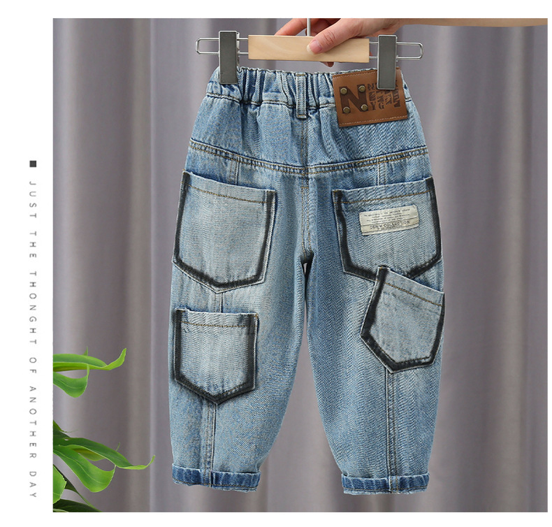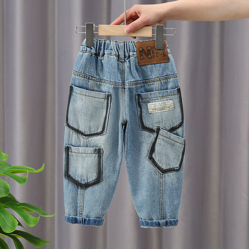 소년 바지 봄 어린이 청바지 2025 새로운 도착 소년 유행 바지 키즈 한국 캐주얼 스트레이트 다리 바지