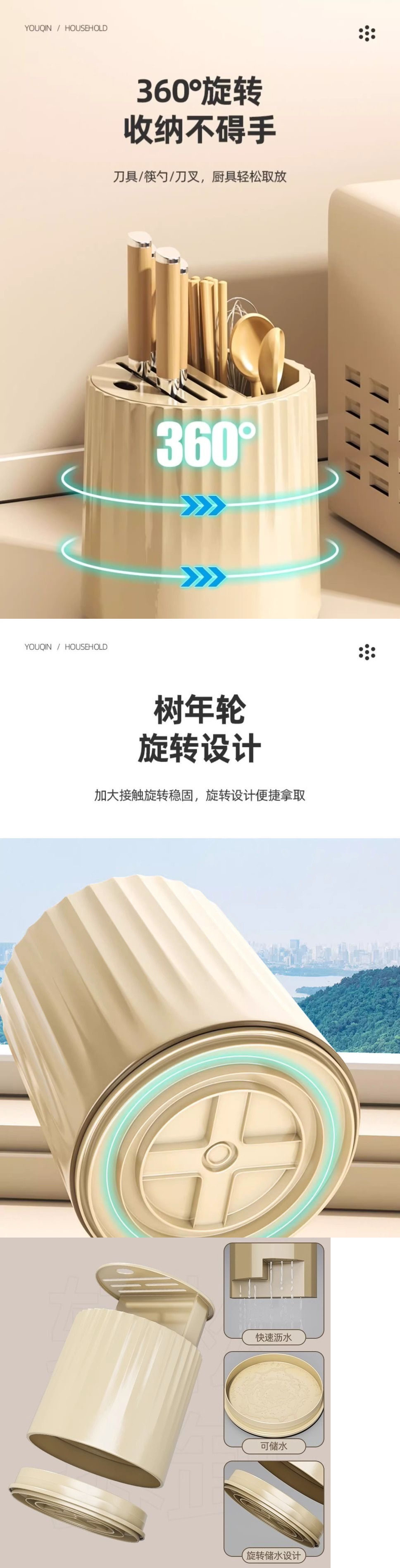 회전 칼 홀더 저장 랙 다기능 젓가락 숟가락 튜브 주방 카운터 탑 주방 칼 홀더 젓가락 케이지 통합 저장 인공물스토어 가기