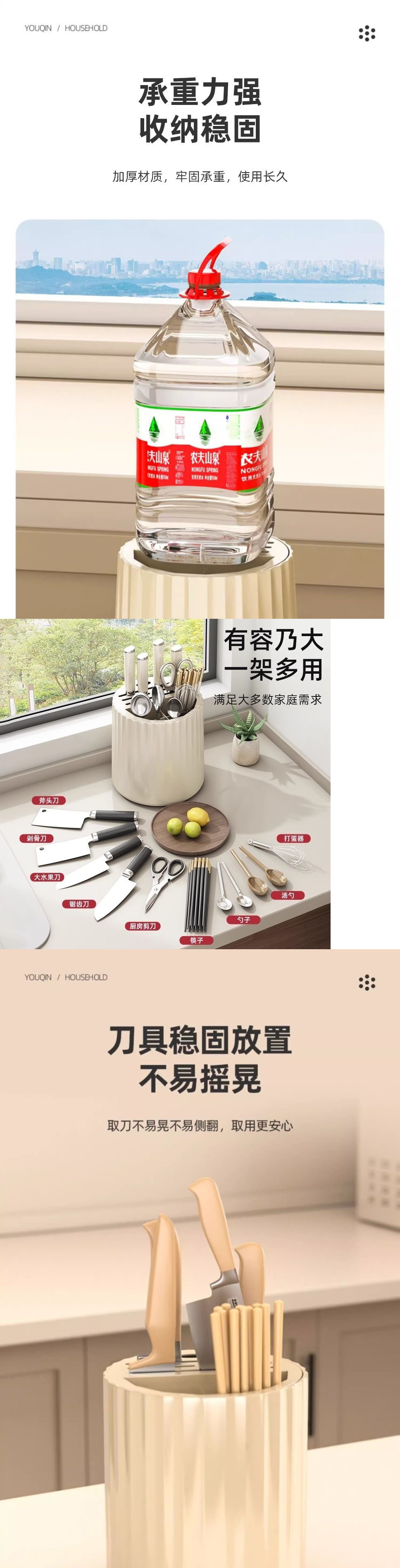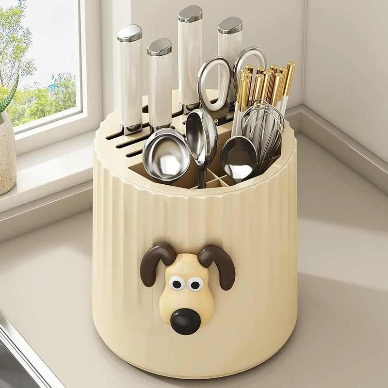 회전 칼 홀더 저장 랙 다기능 젓가락 숟가락 튜브 주방 카운터 탑 주방 칼 홀더 젓가락 케이지 통합 저장 인공물