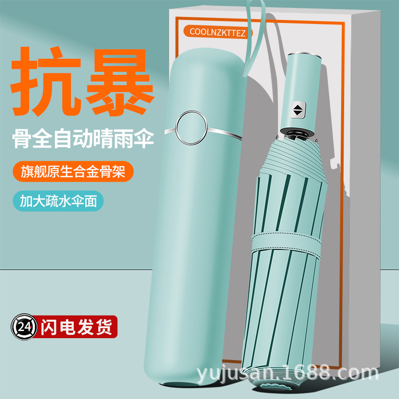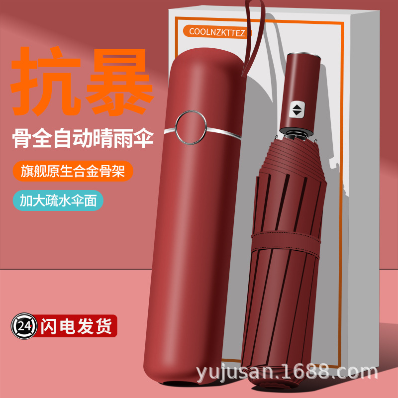 럭셔리 로그 우산 핸들 완전 자동 우산 남성 증가 강화 햇살 우산 맑고 비 UV 고정 인쇄 로고 시스템