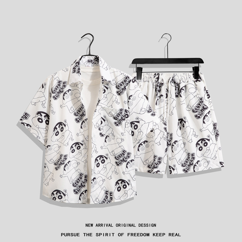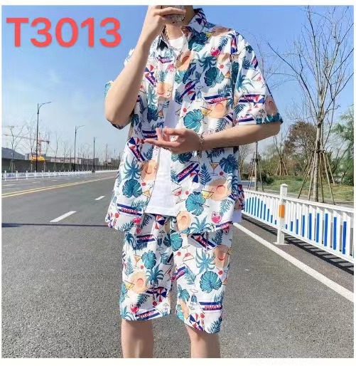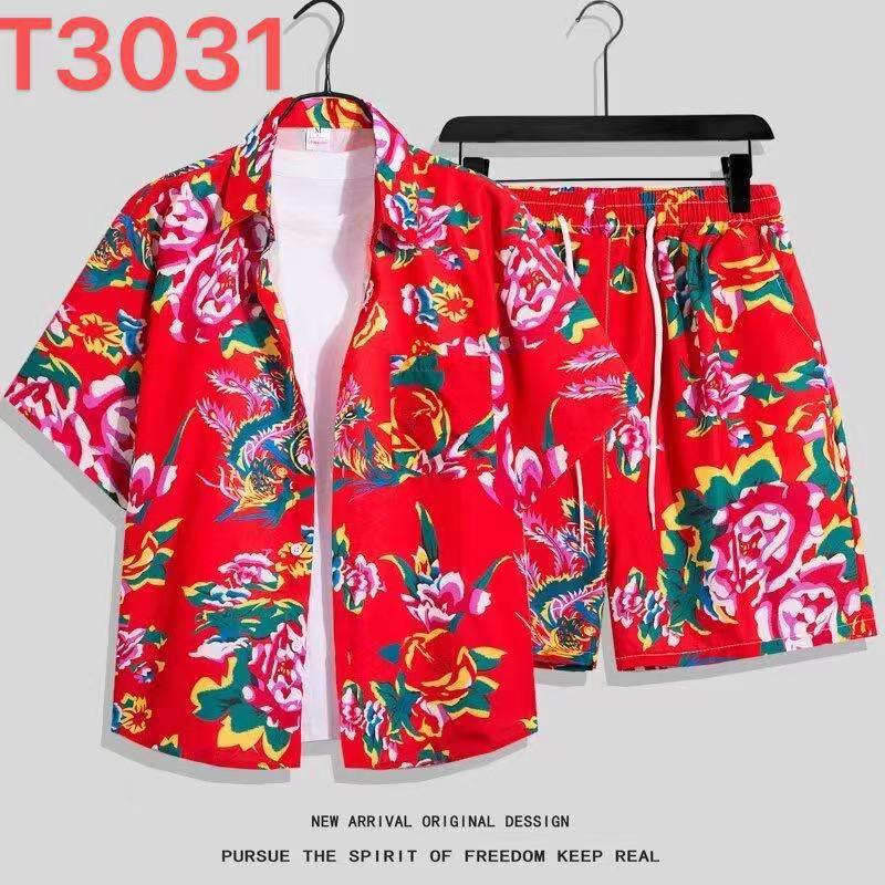 아이스 실크 비치 세트 남자 반팔 플로라 셔츠 플러스 사이즈 느슨한 하와이 빠른 건조 캐주얼 반바지 커플 세트스토어 가기