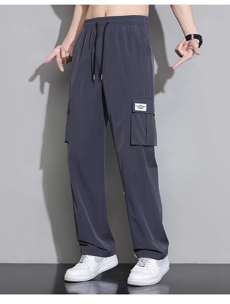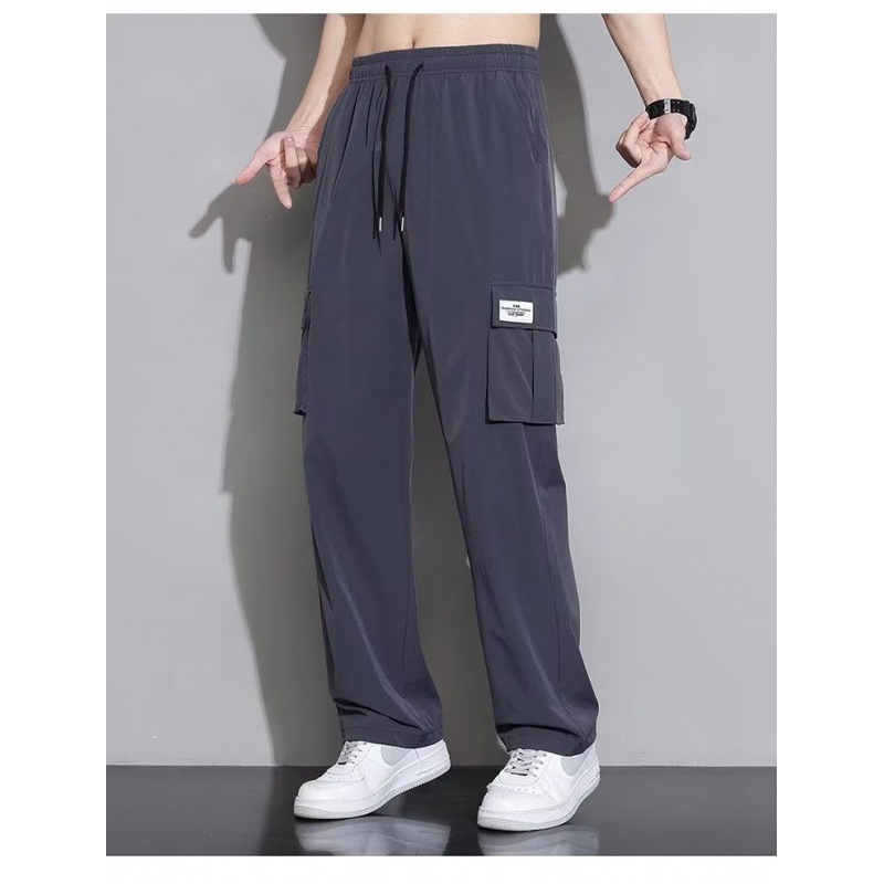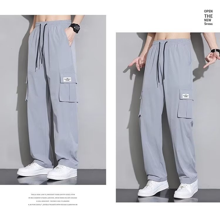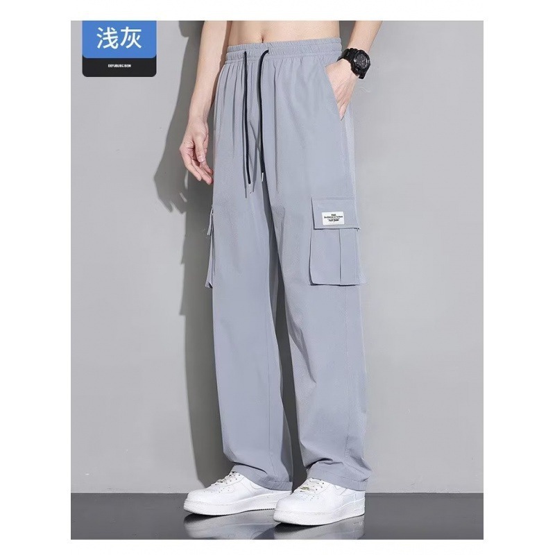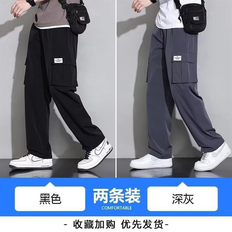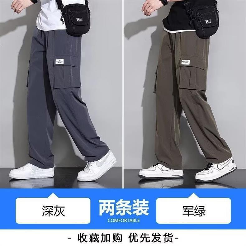 아이스 실크 작업복 캐주얼 바지 소년 여름 얇은 느슨한 넓은 다리 바지 2025 새로운 패션 스트레이트 바지 남성스토어 가기