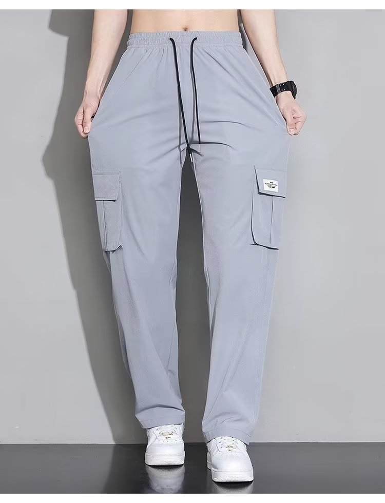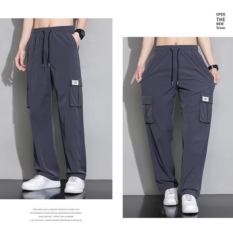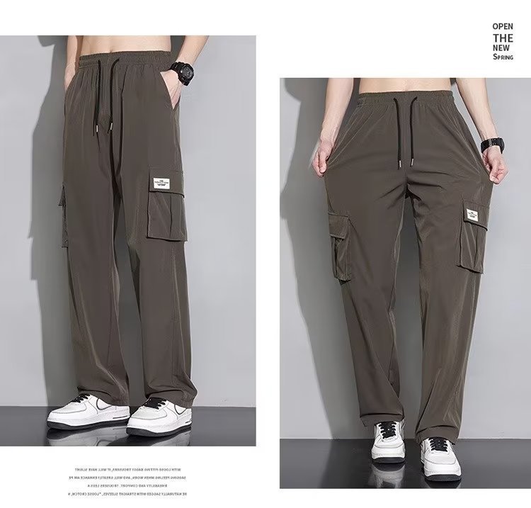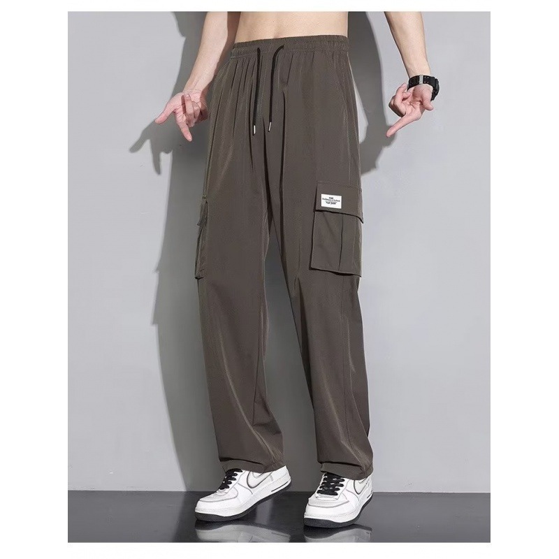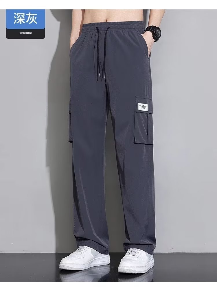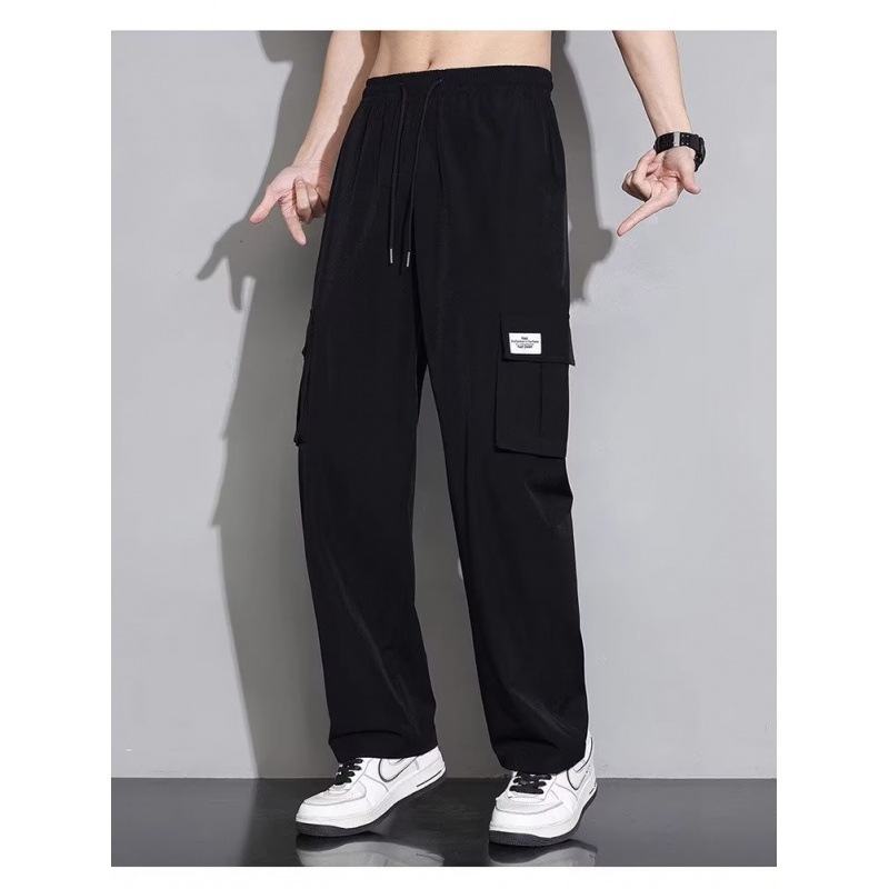 아이스 실크 작업복 캐주얼 바지 소년 여름 얇은 느슨한 넓은 다리 바지 2025 새로운 패션 스트레이트 바지 남성스토어 가기