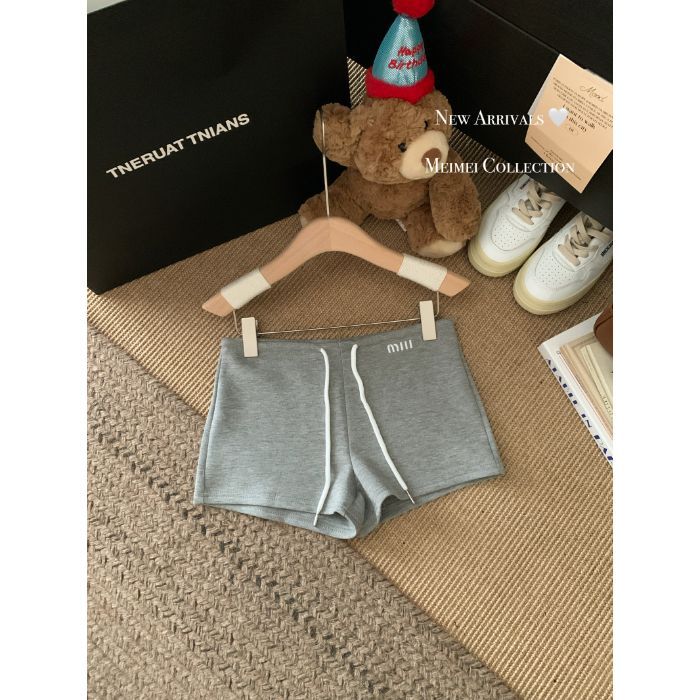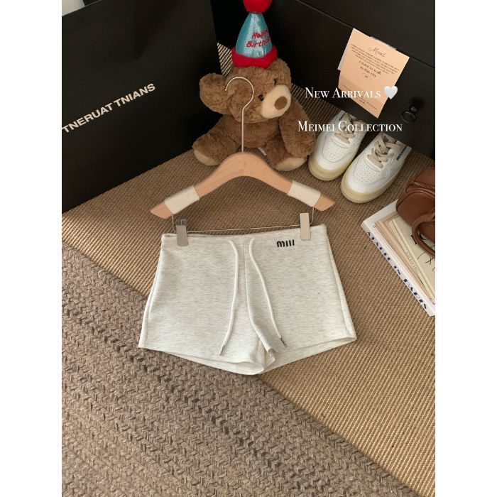 뜨거운 여자 높은 허리 캐주얼 바지 회색 반바지 여성 여름 연령 감소 드로우 스트링 A 자형 와이드 레그 핫 바지 블랙 스포츠 바지