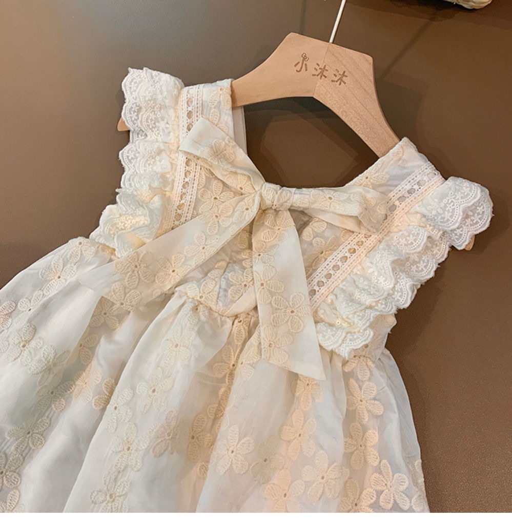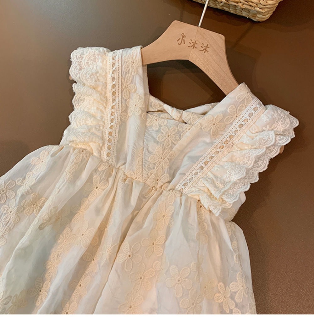 여름 소녀 원피스 아기 세련된 어린이 맞춤형 유행 브랜드 한국 스타일 꽃 레이스 레이스 달콤한 공주 원피스