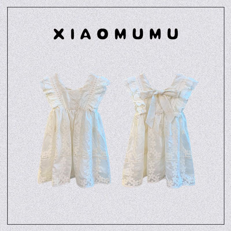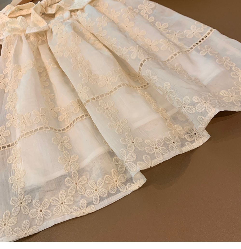 • 화이트 플라잉 슬리브 자수 플라워 스커트