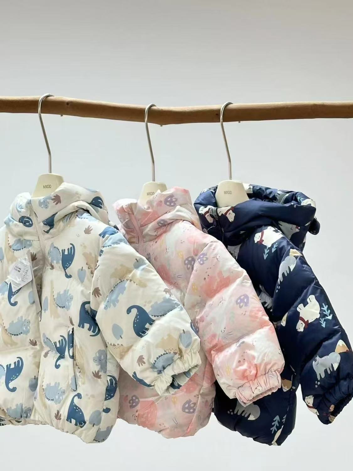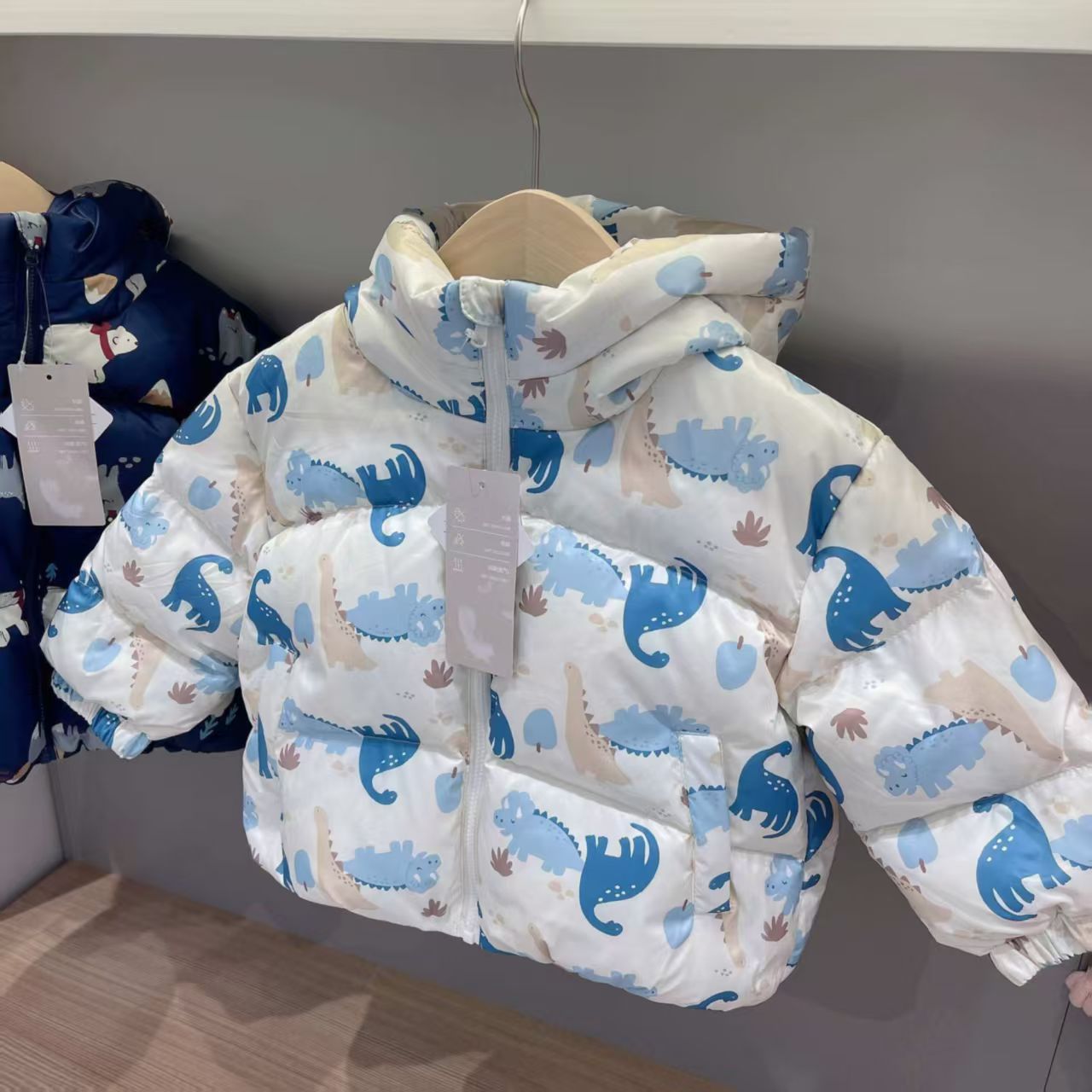 DW와 동일한 스타일의 아동용 다운 재킷, 겨울용 남아 코트, 여아용 패딩 재킷, 따뜻한 컷아웃 라벨 유아용 흰색 오리털 충전재스토어 가기