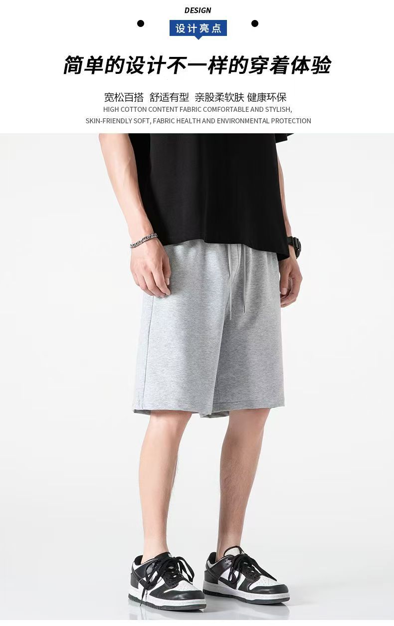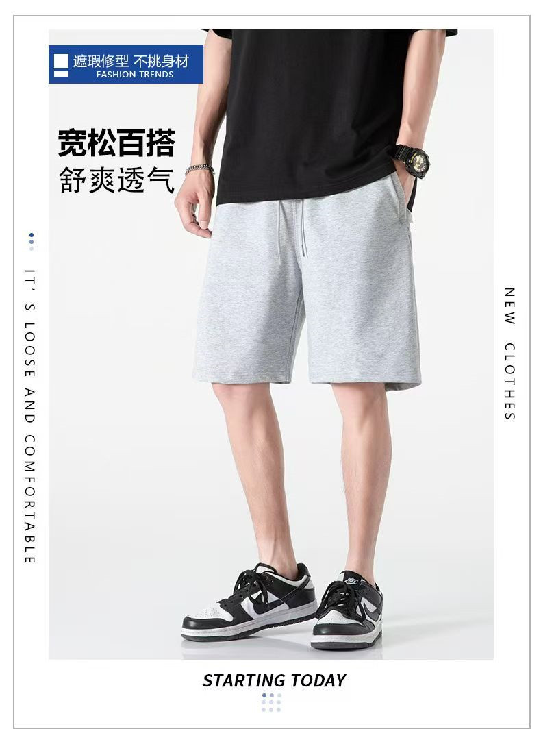 반바지 남자 회색 캐주얼 2025 여름 트렌디 코튼 라이트 보드 느슨한 외부 착용 얇은 5 점 스포츠 땀 바지 배치스토어 가기