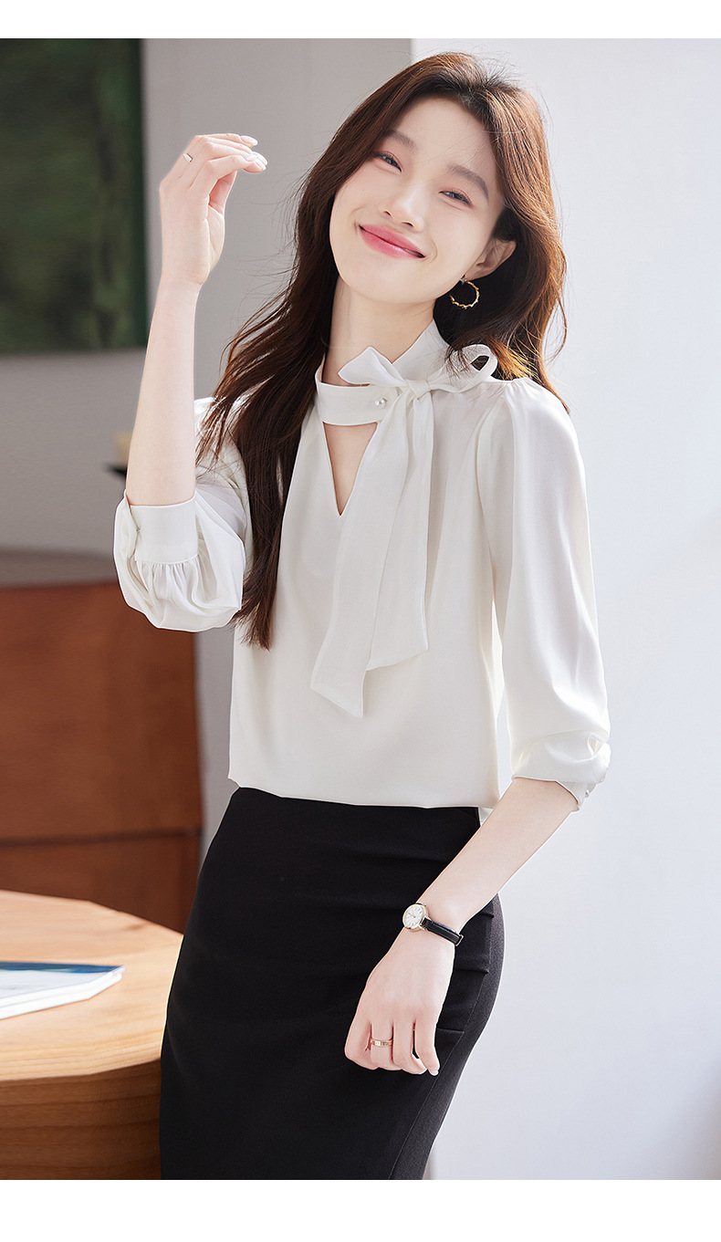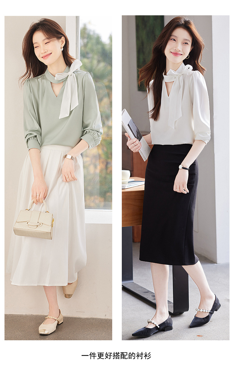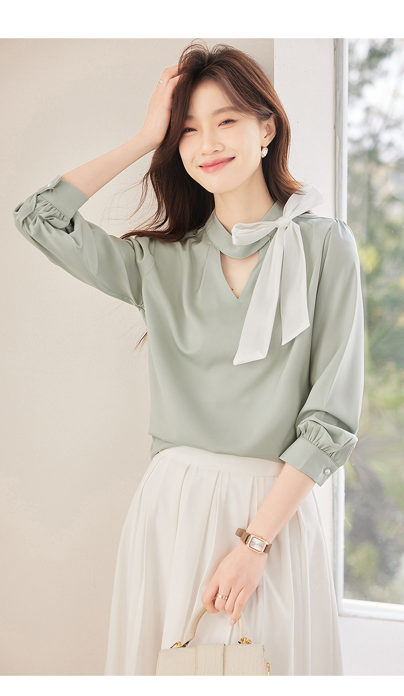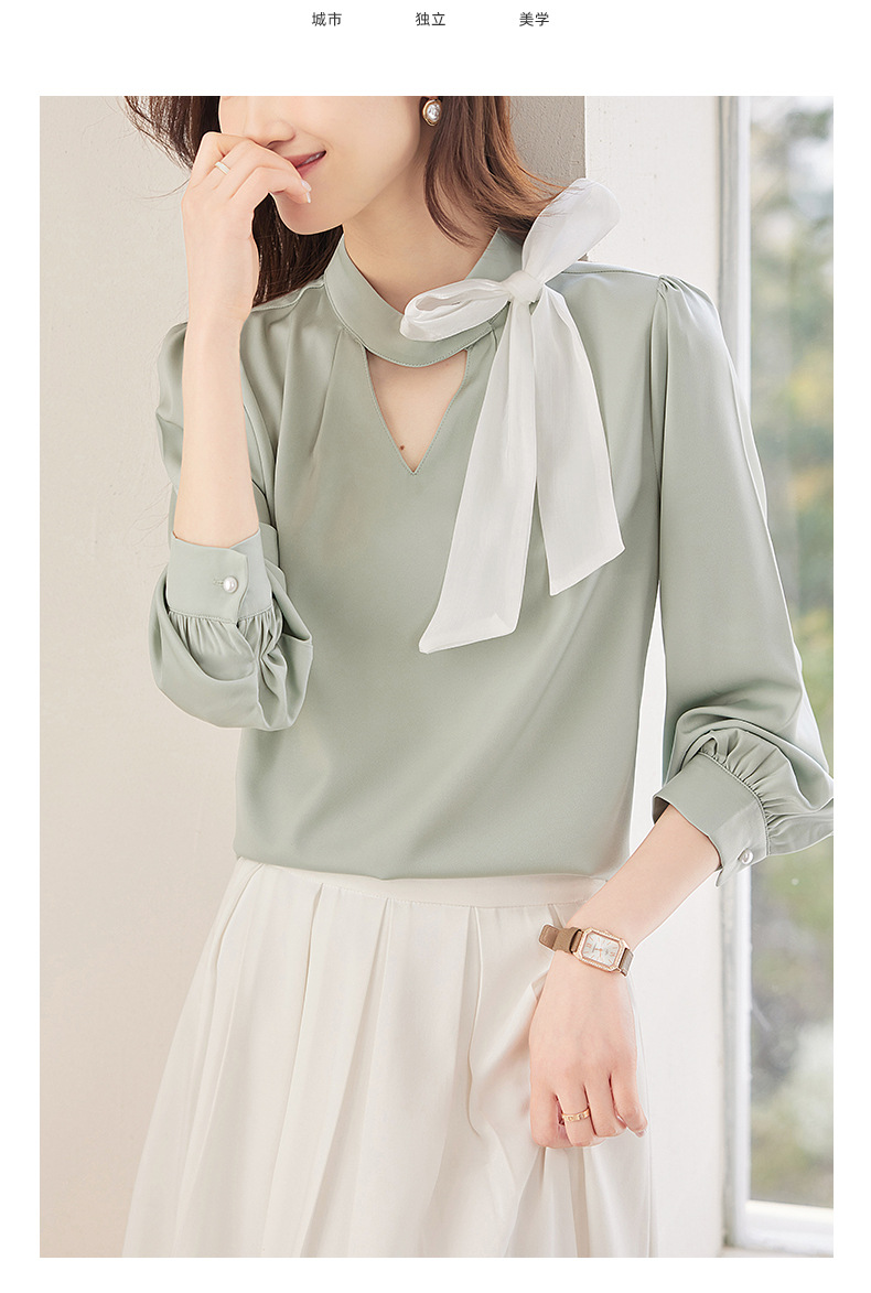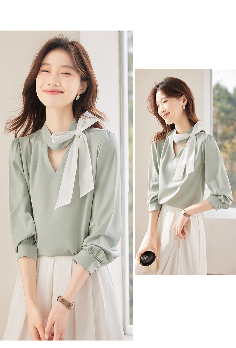 프랑스 새틴 레이스 업 랜턴 소매 긴 소매 셔츠 여성의 2025 년 봄과 가을 새로운 한국 스타일 스위트 레이디 쉬폰 셔츠스토어 가기