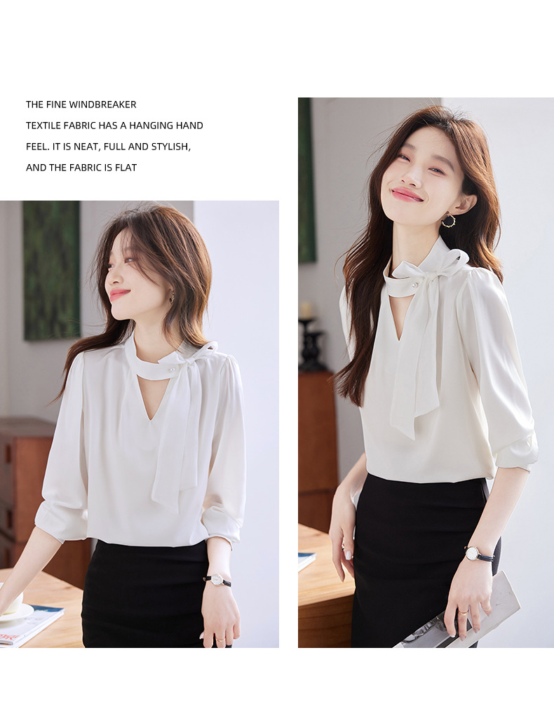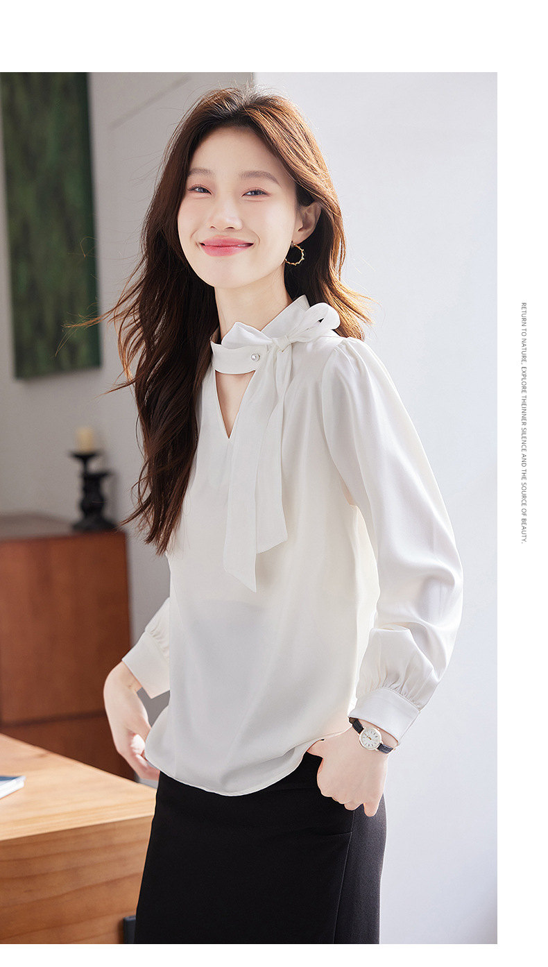 프랑스 새틴 레이스 업 랜턴 소매 긴 소매 셔츠 여성의 2025 년 봄과 가을 새로운 한국 스타일 스위트 레이디 쉬폰 셔츠