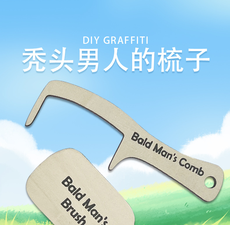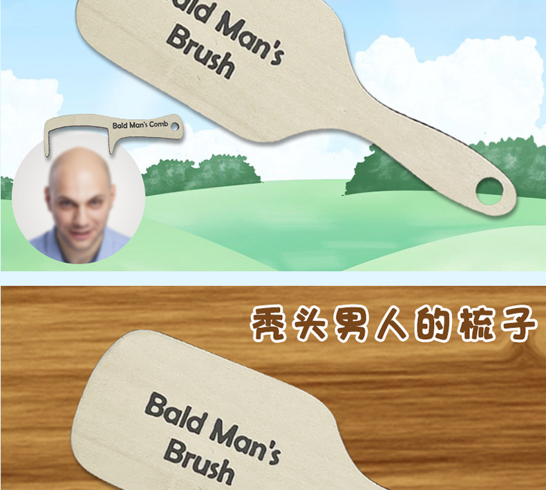대머리 남자 빗 나무 이빨 빗 대머리 남자 아버지의 날 창조적 인 선물 크로스 테두리를위한 재미있는 선물스토어 가기