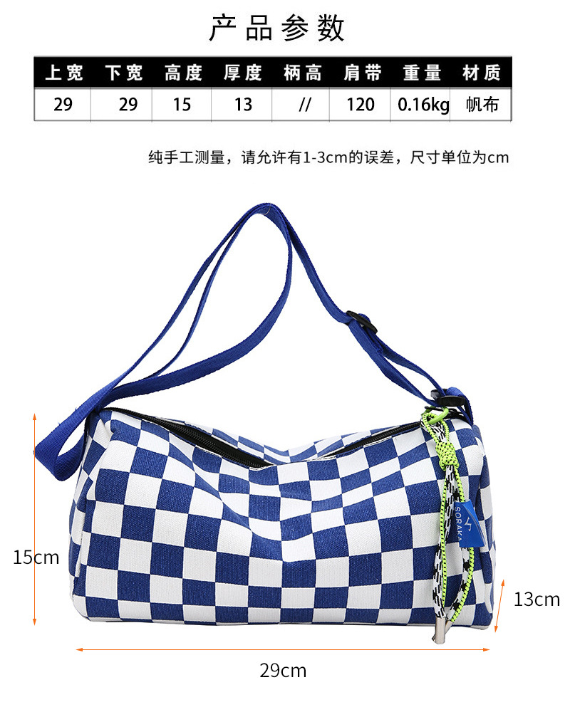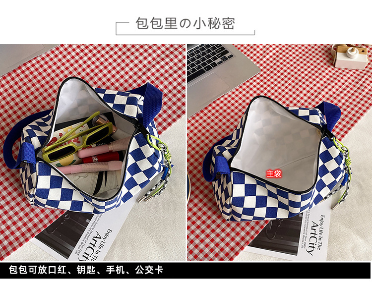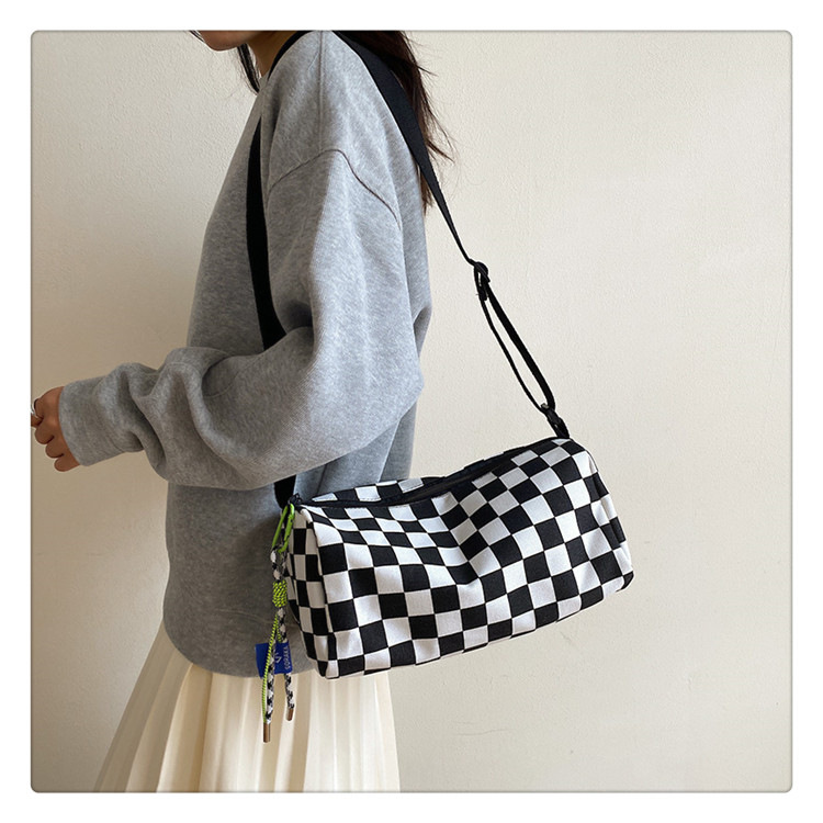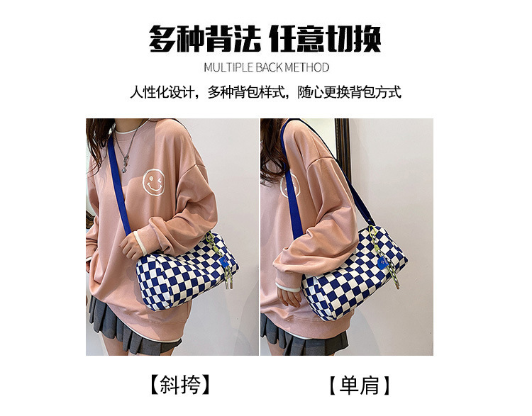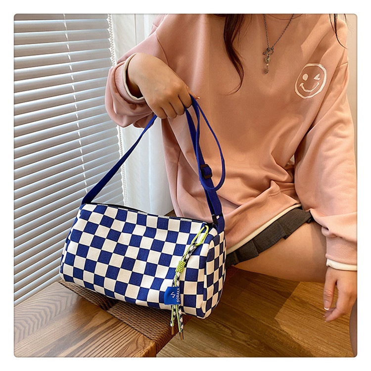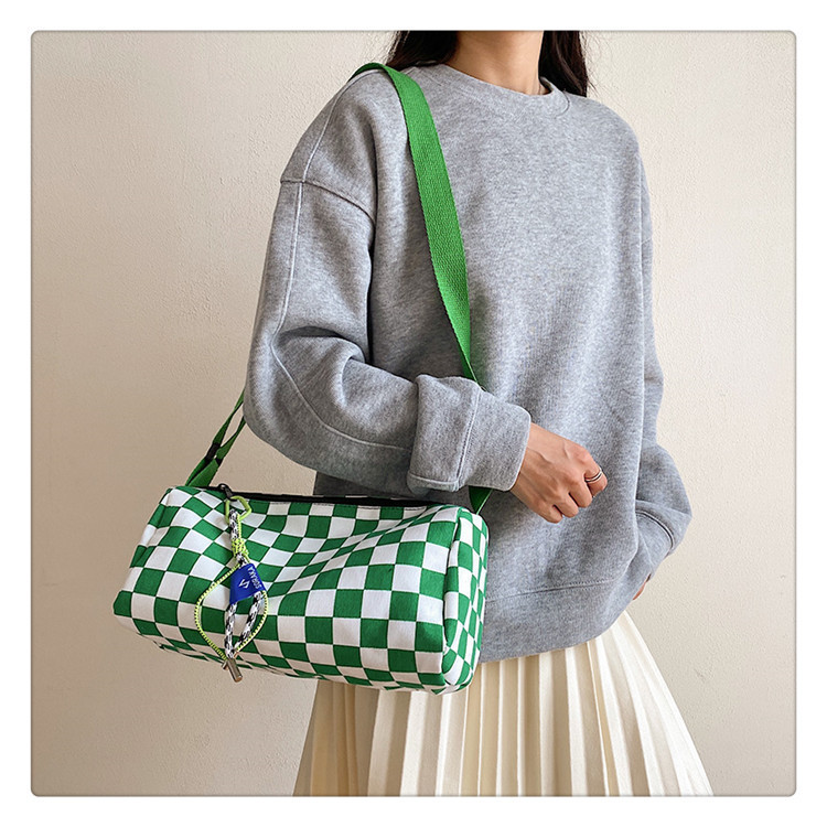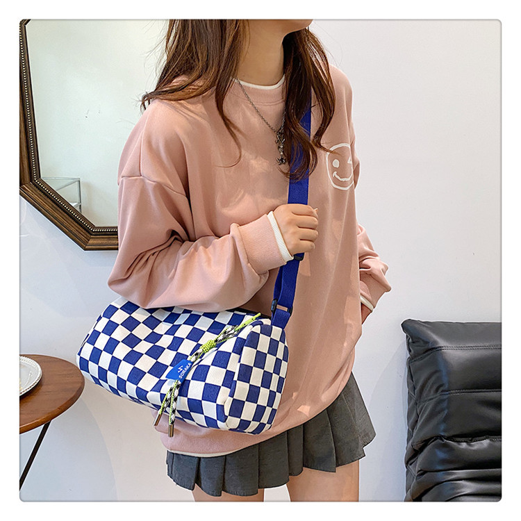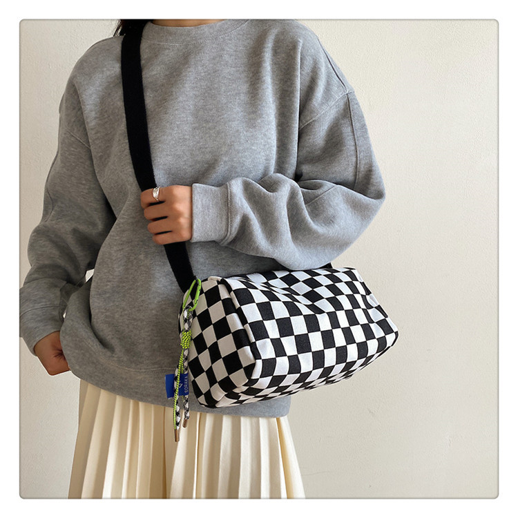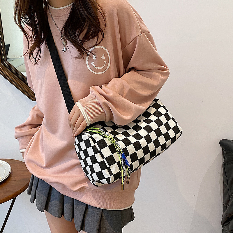 어깨 크로스 바디 여성용 가방 2025 새로운 한국어 버전 바둑판 캐주얼 여성용 가방 대용량 메신저 백 숄더 보스턴 백