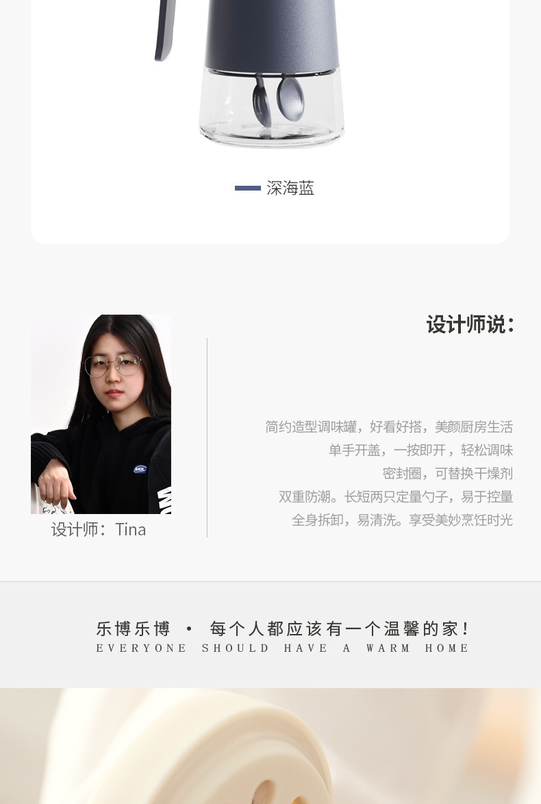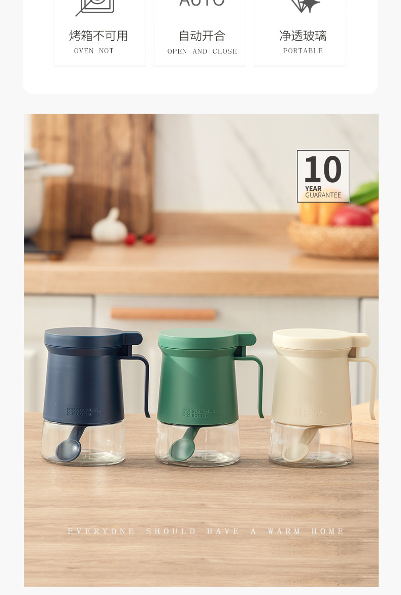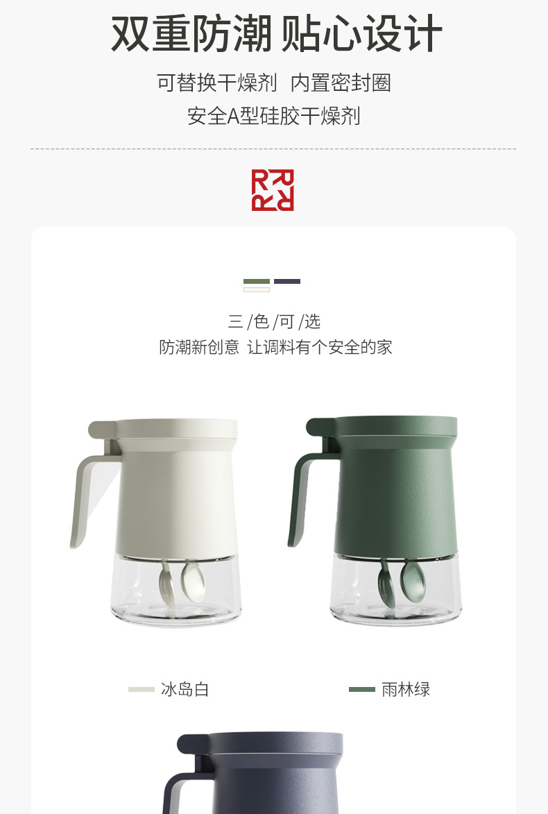 • 商品名称:北欧风带把手按压开盖防潮透明玻璃调料瓶 含干燥剂带2勺子--冰岛白