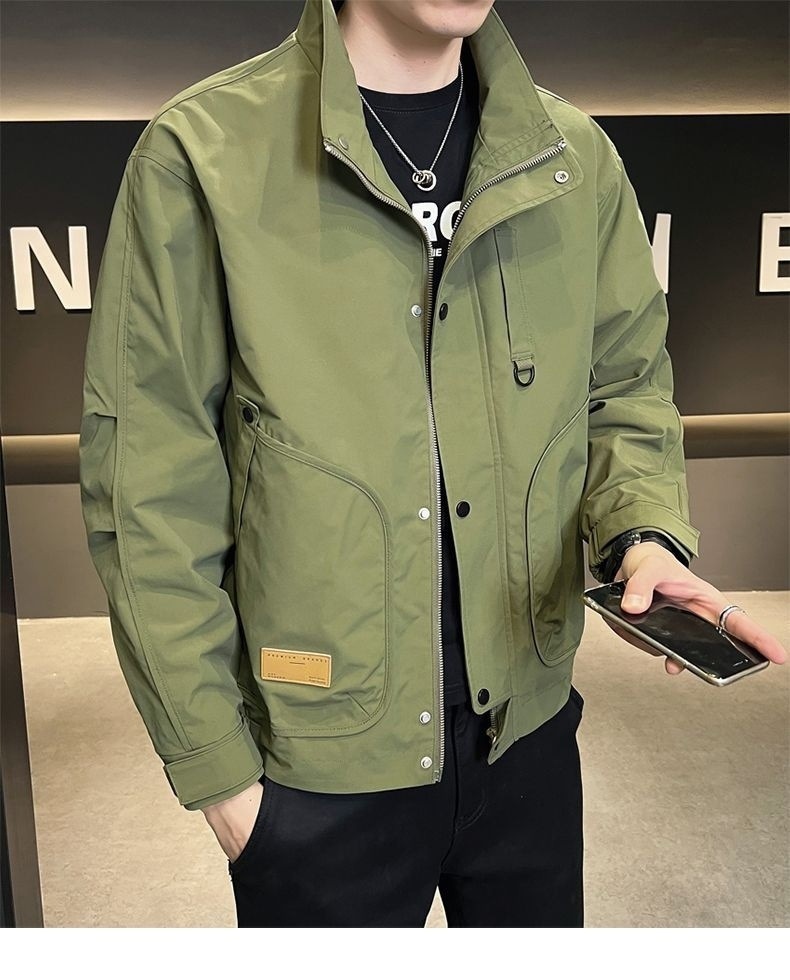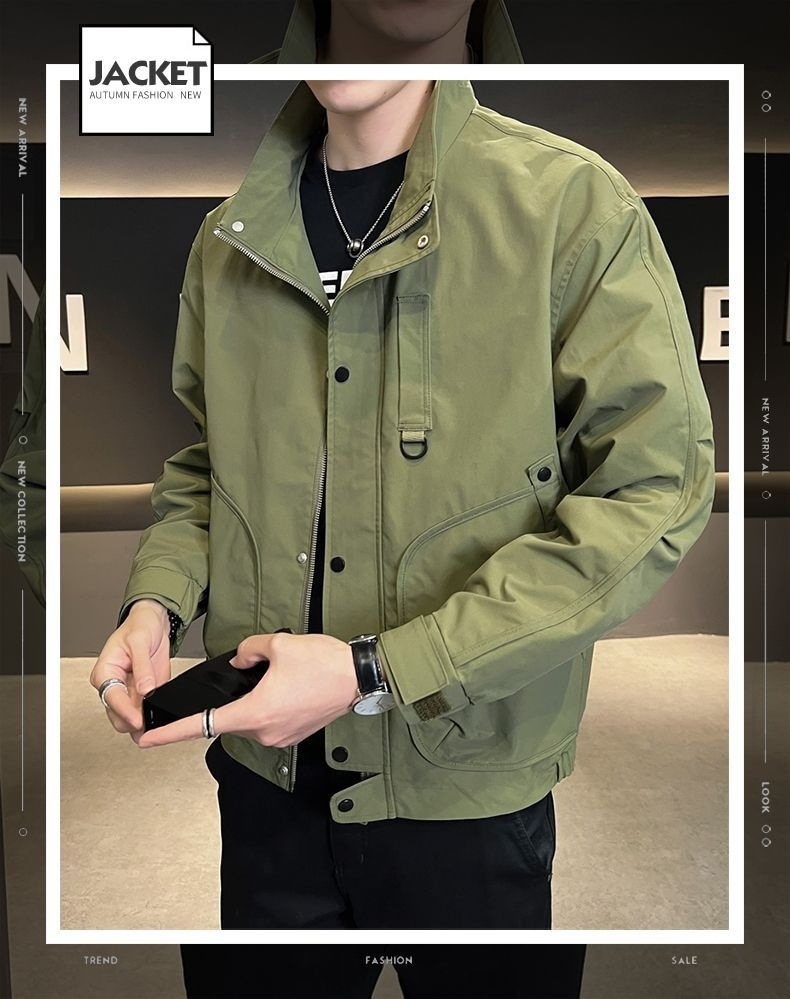 남성 자켓 봄과 가을 패션 브랜드 하이 엔드 센스 캐주얼 패션 탑 2024 새로운 스타일 수직 칼라 툴링 재킷