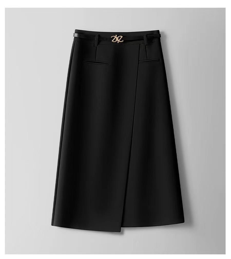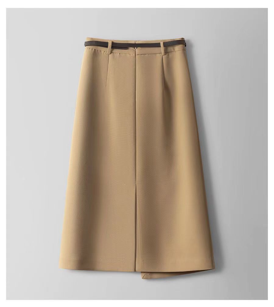 벨트 A 라인 스커트 스커트 여자 봄과 여름 2024 새로운 하이 엔드 웨스턴 스타일 분할 캐주얼 올 매치 세트 스커트