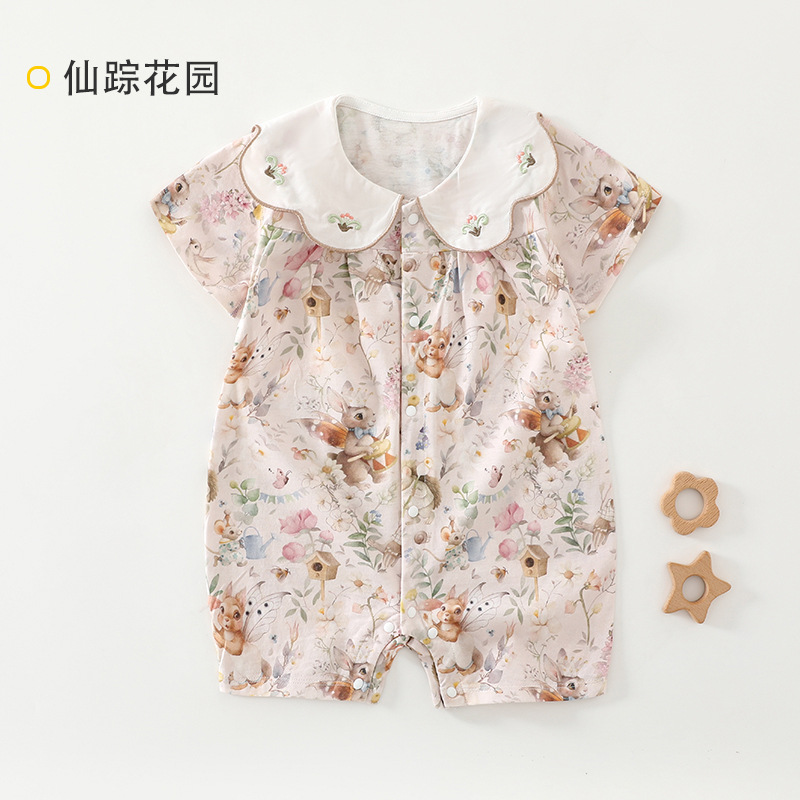 2025 새로운 아기 점프 수트 여름 신생아 옷 짧은 소매 얇은 등반 옷 아기 면화스토어 가기