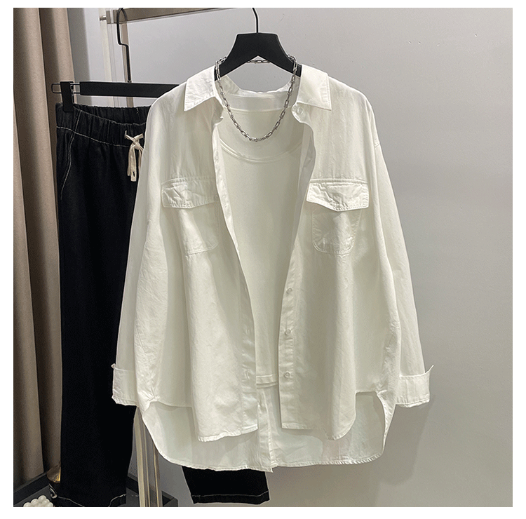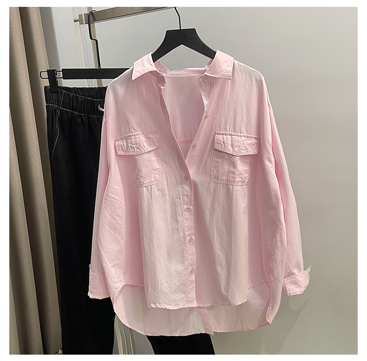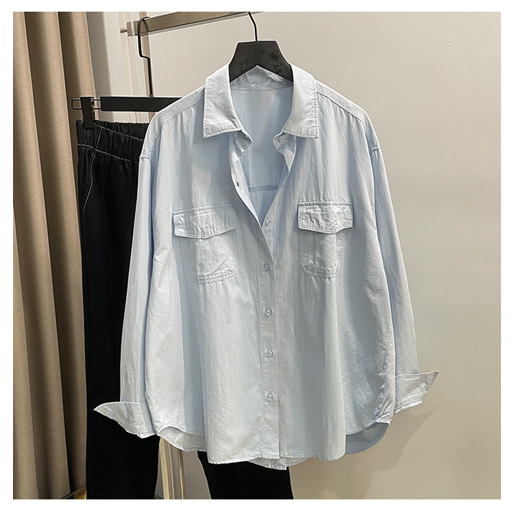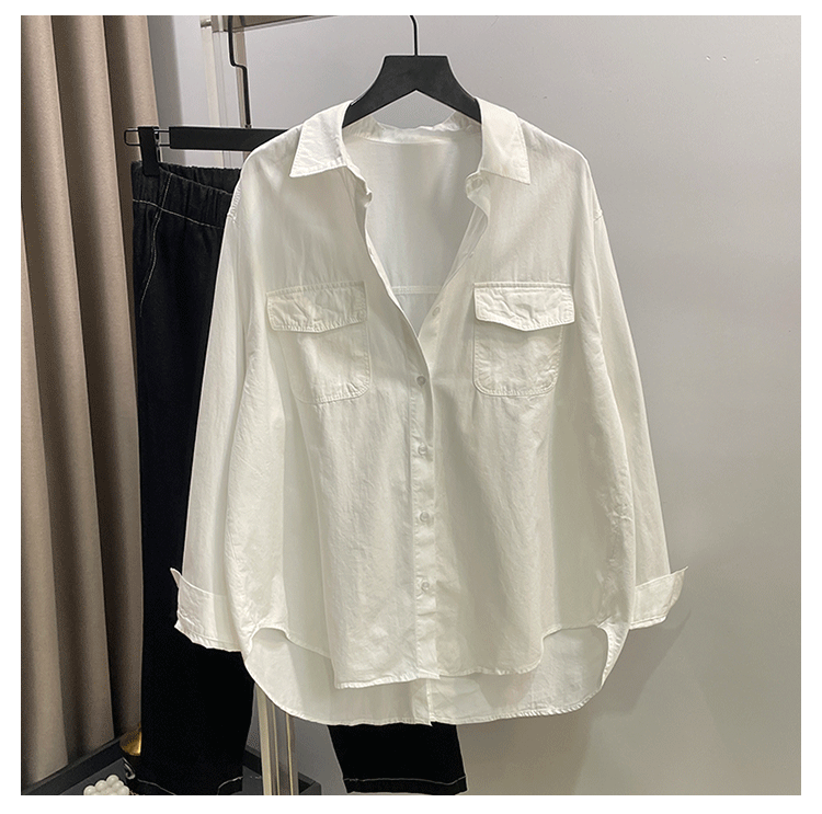 디자인 센스 니쉬 백 스플릿 세련된 단색 셔츠 여성의 느슨한 2025 새로운 캐주얼 슬리밍 탑스토어 가기