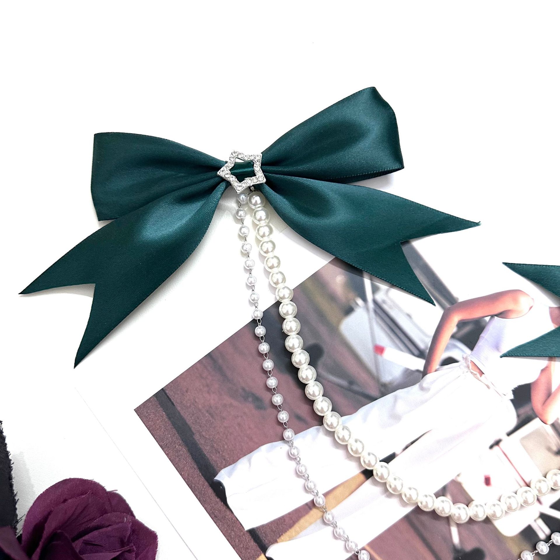 원래 다크 그린 활은 새로운 통증 가방 DIY 펜던트 액세서리 완비 진주 브로치 체인을 도와야합니다스토어 가기