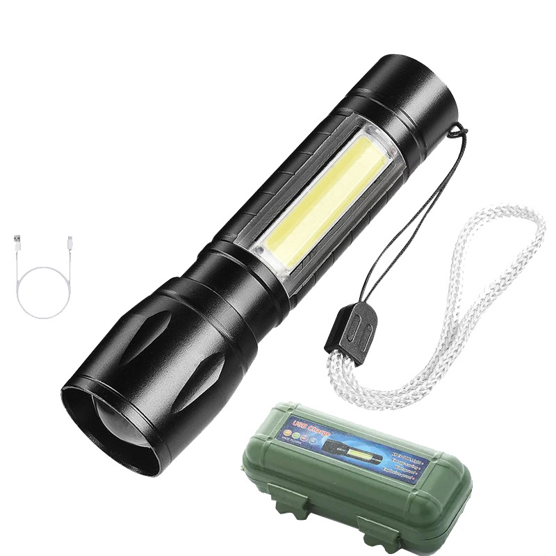 국경을 넘는 알루미늄 합금 손전등 USB 충전식 LED 줌 기능 야외 조명 다기능 휴대용 방수 충전식스토어 가기