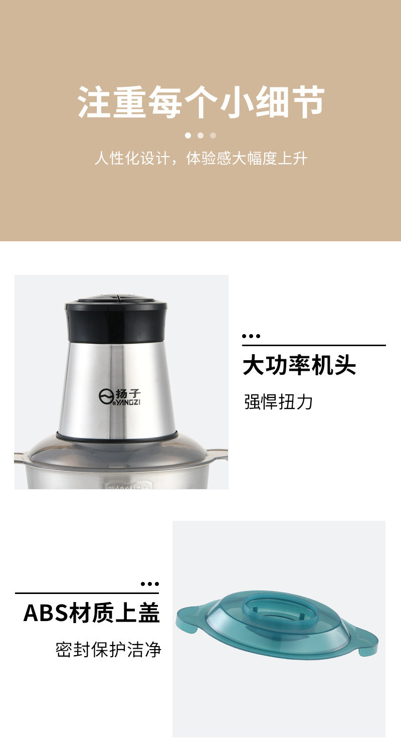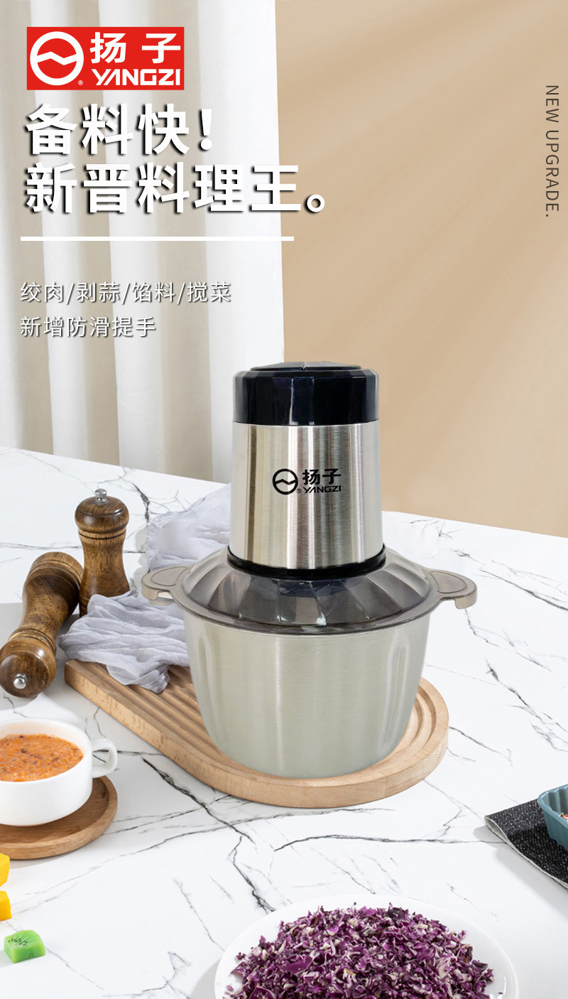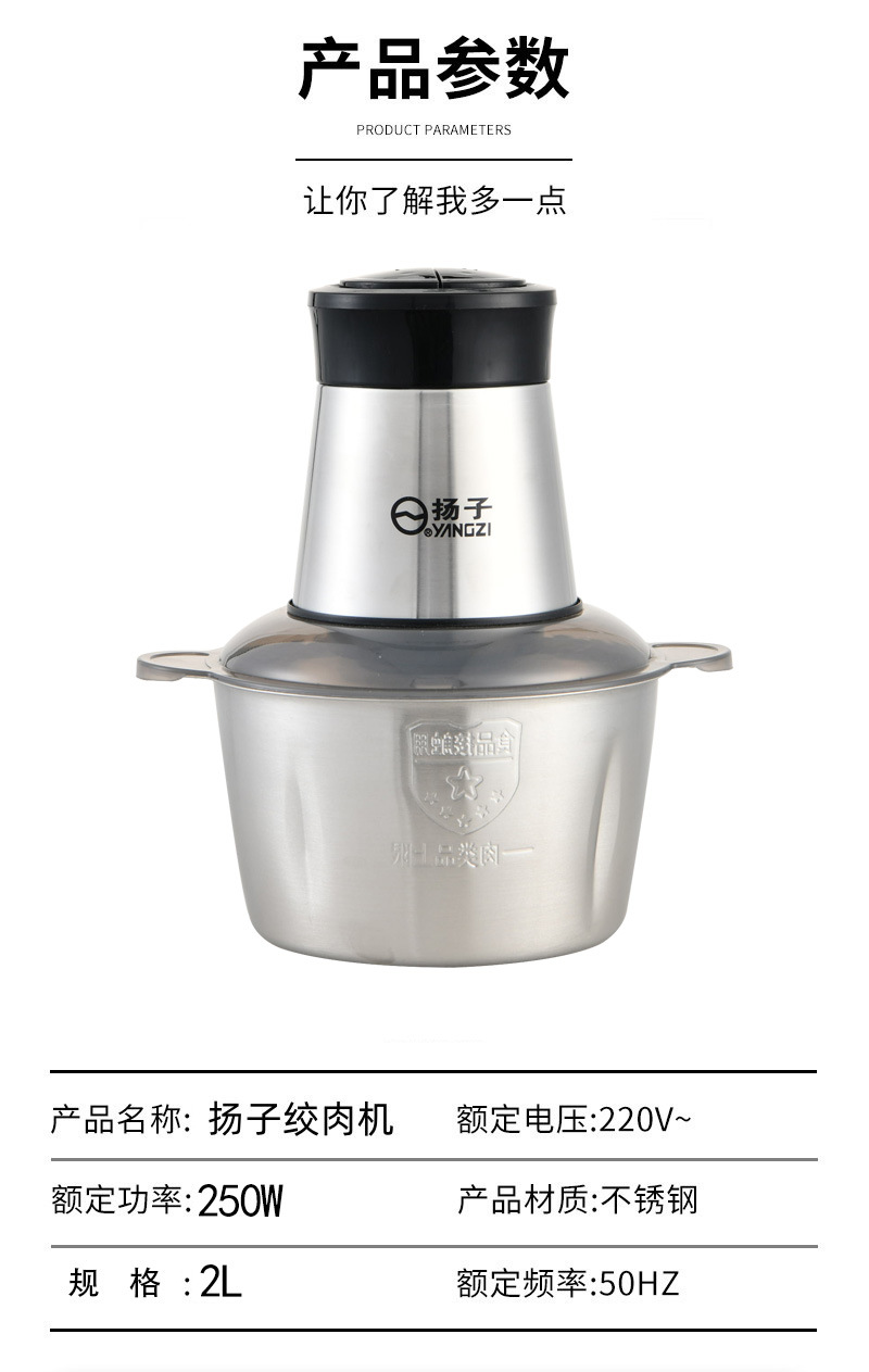 [1개 배송] Yangzi 2L 스테인레스 스틸 조리 기계 식품 보충 기계 다진 야채 양파 생강 마늘 레 고기 Yangzi 고기 분쇄기