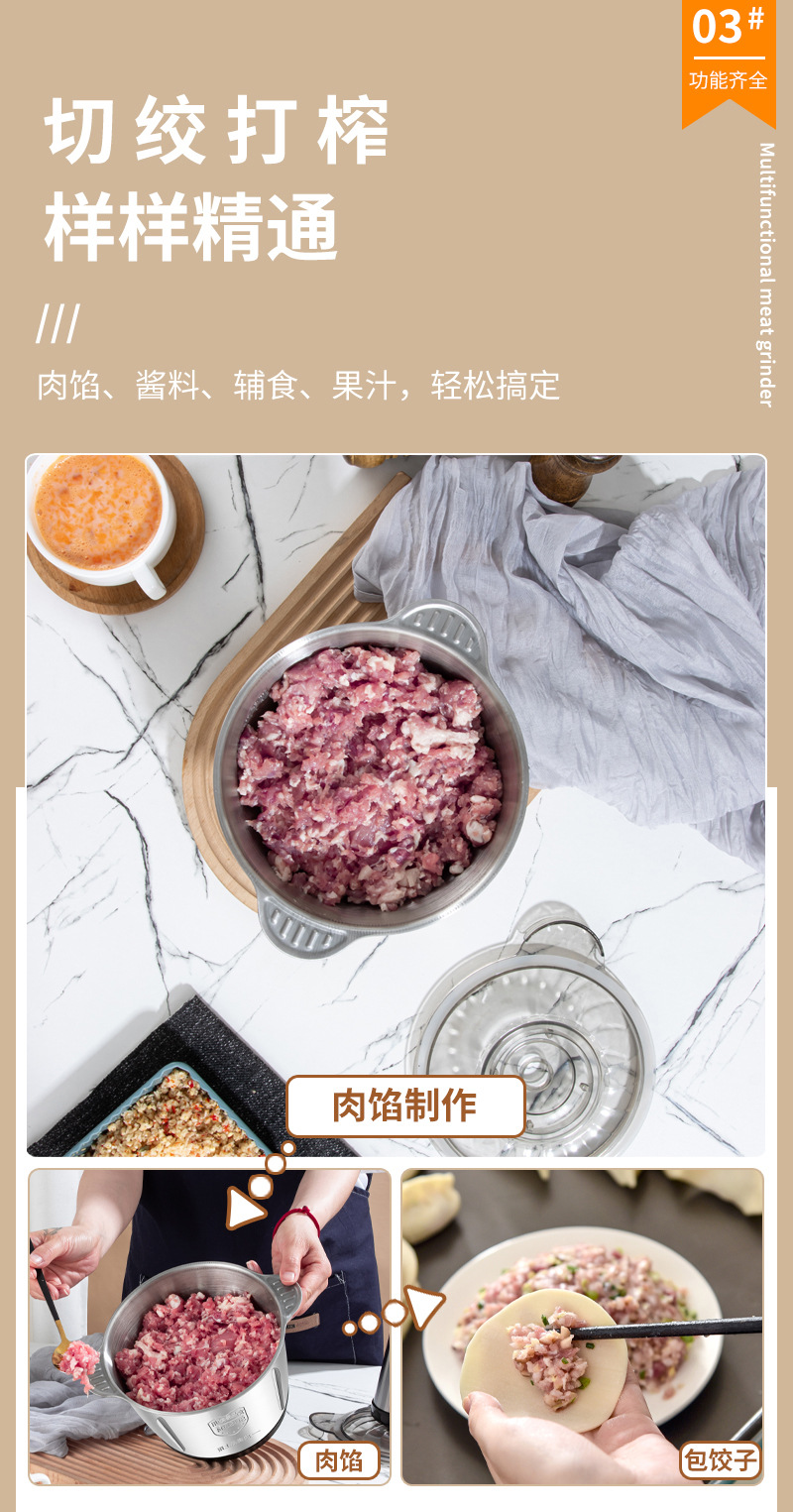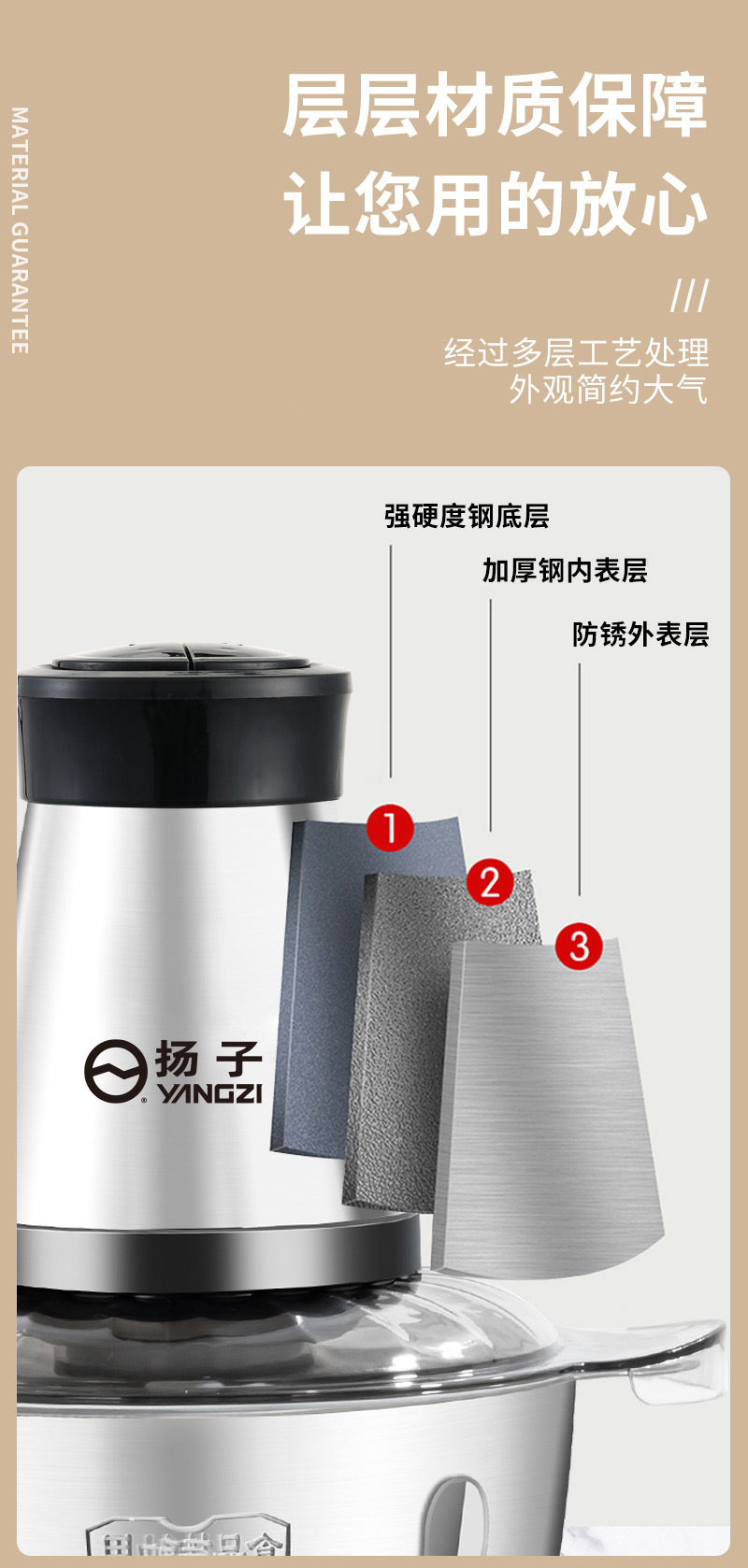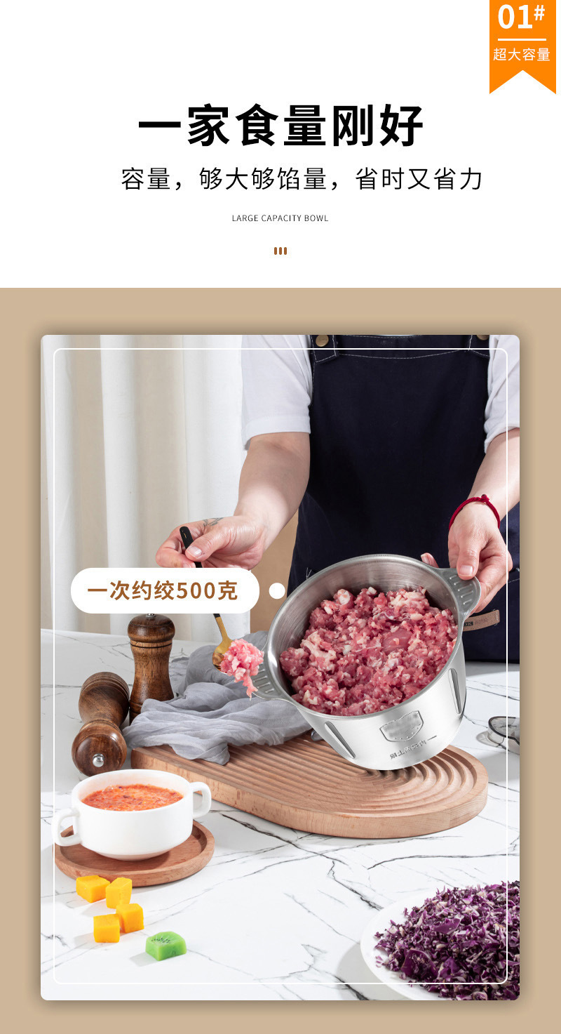 [1개 배송] Yangzi 2L 스테인레스 스틸 조리 기계 식품 보충 기계 다진 야채 양파 생강 마늘 레 고기 Yangzi 고기 분쇄기