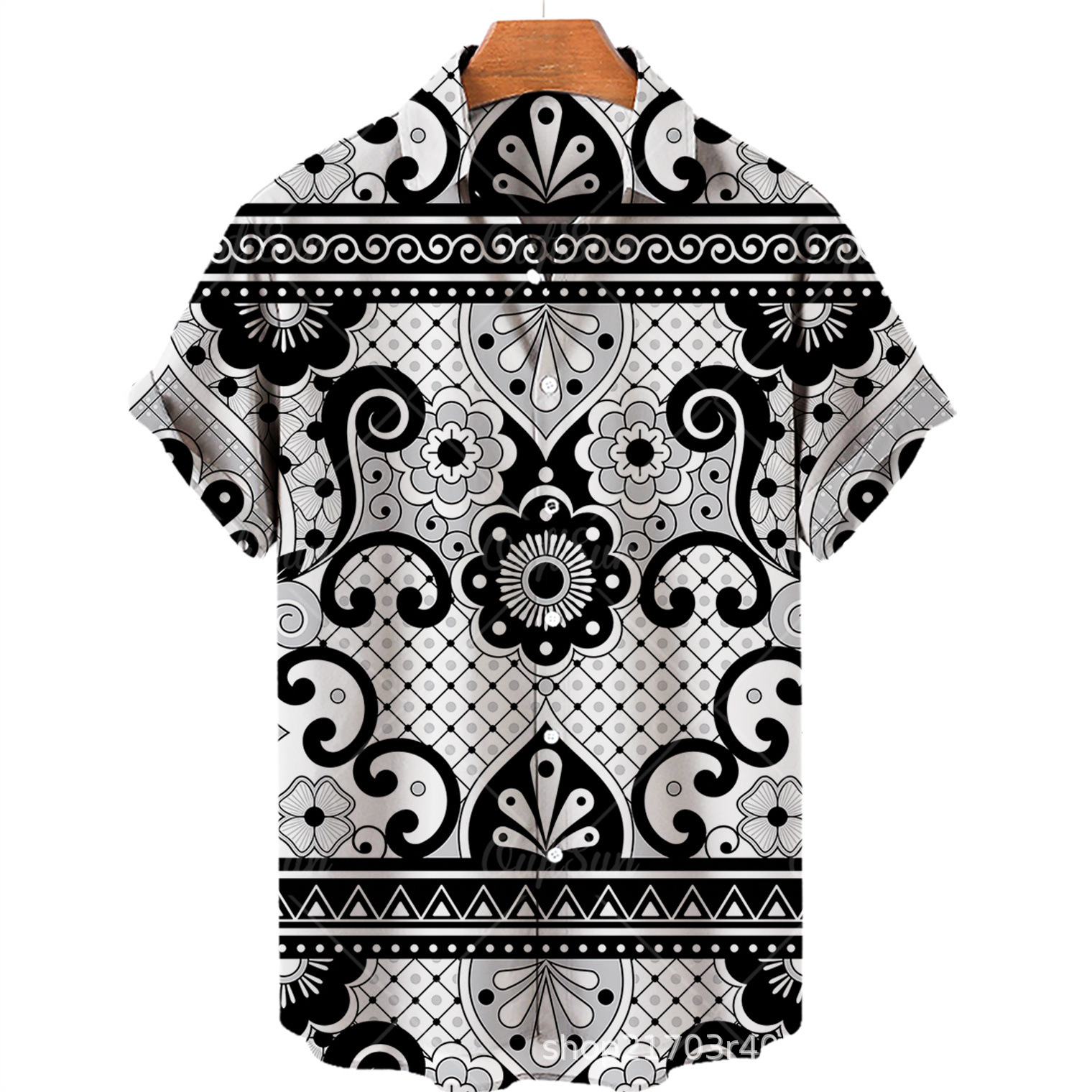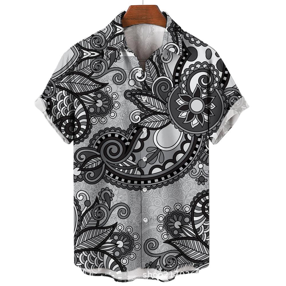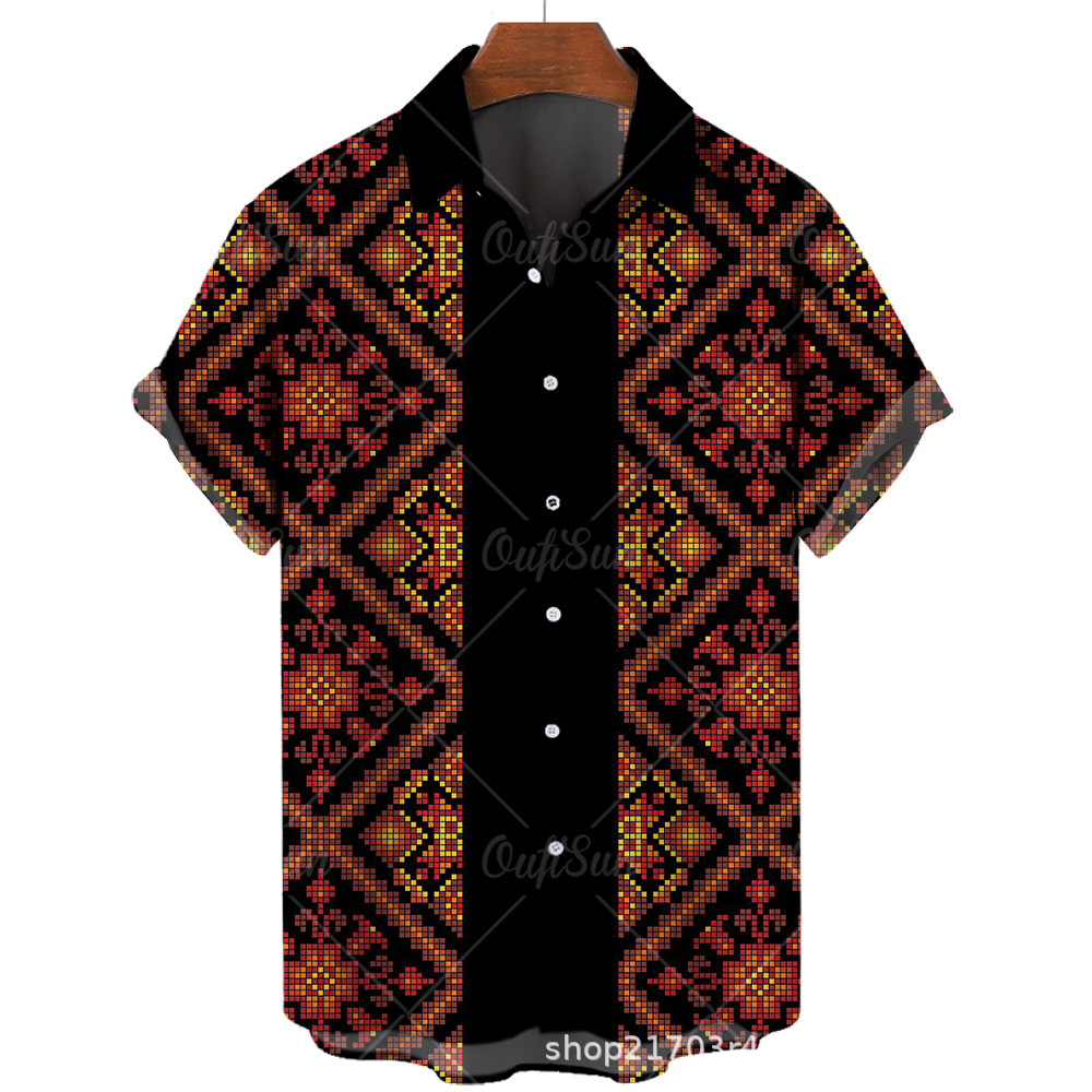 2024 국경 대외 무역 새로운 복고풍 컬러 패턴 시리즈 3D 느슨한 캐주얼 남성 셔츠