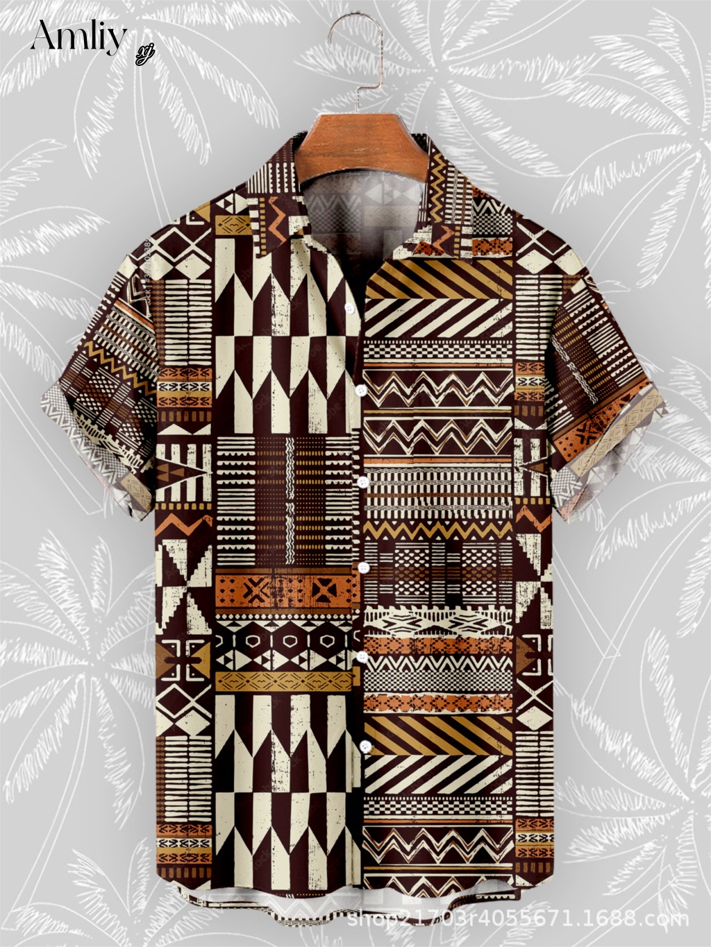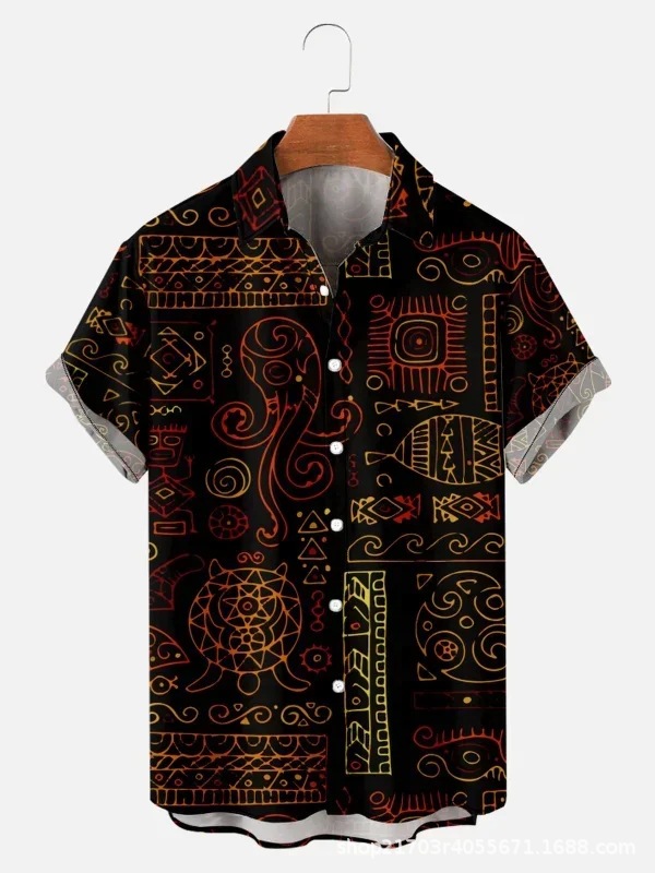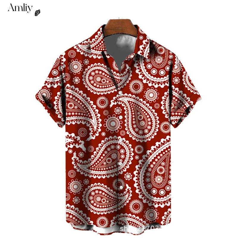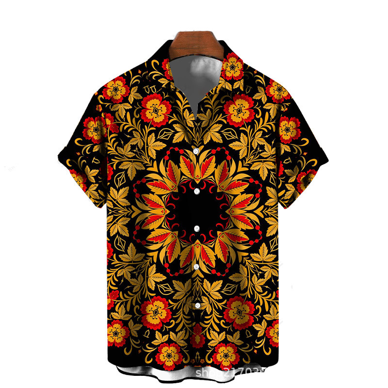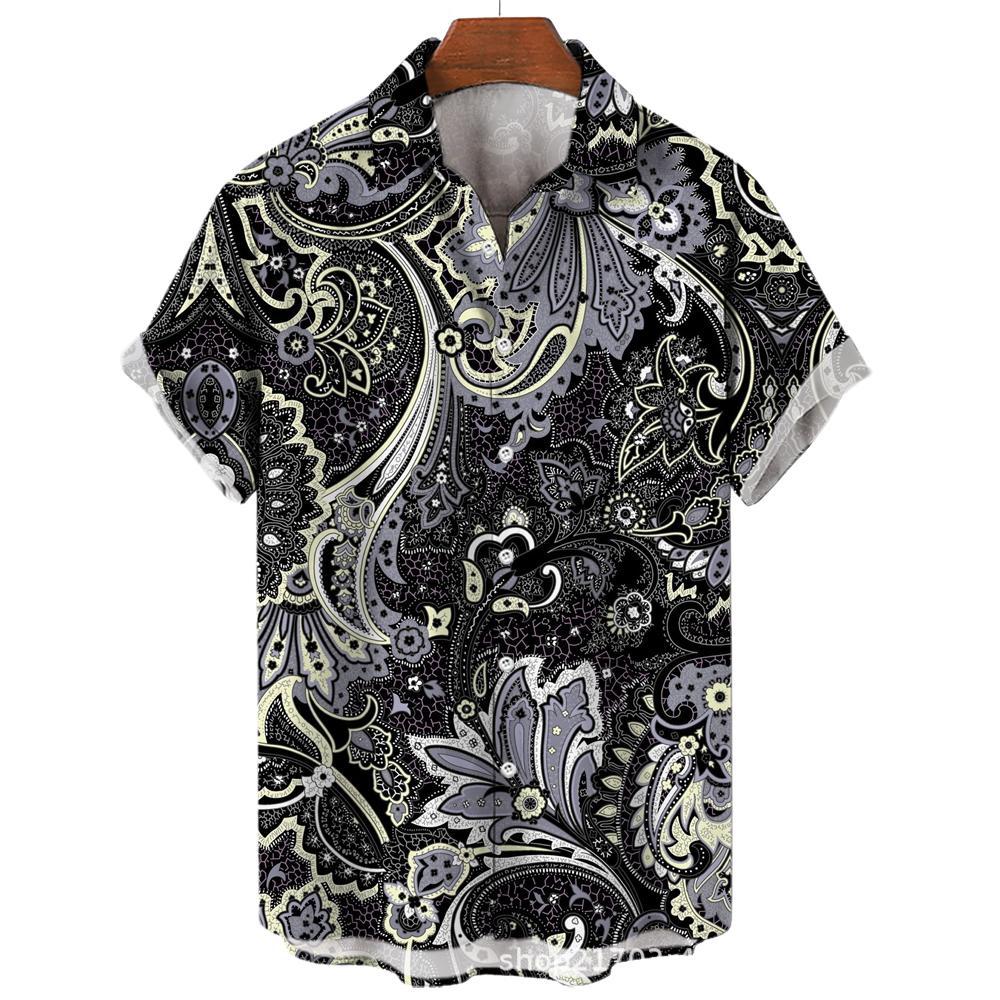 2024 국경 대외 무역 새로운 복고풍 컬러 패턴 시리즈 3D 느슨한 캐주얼 남성 셔츠
