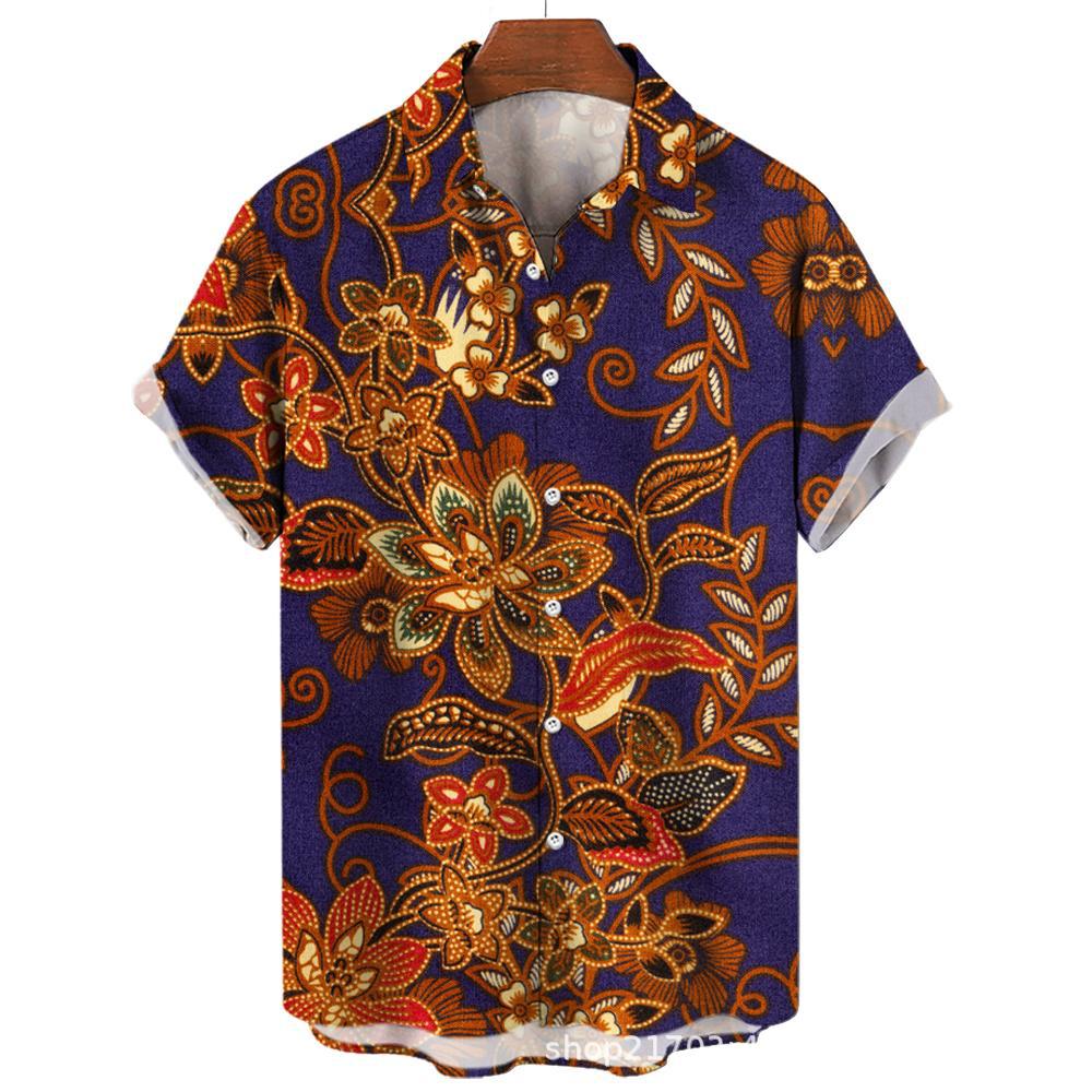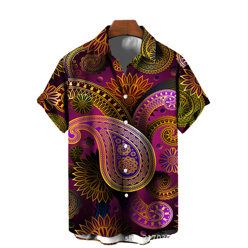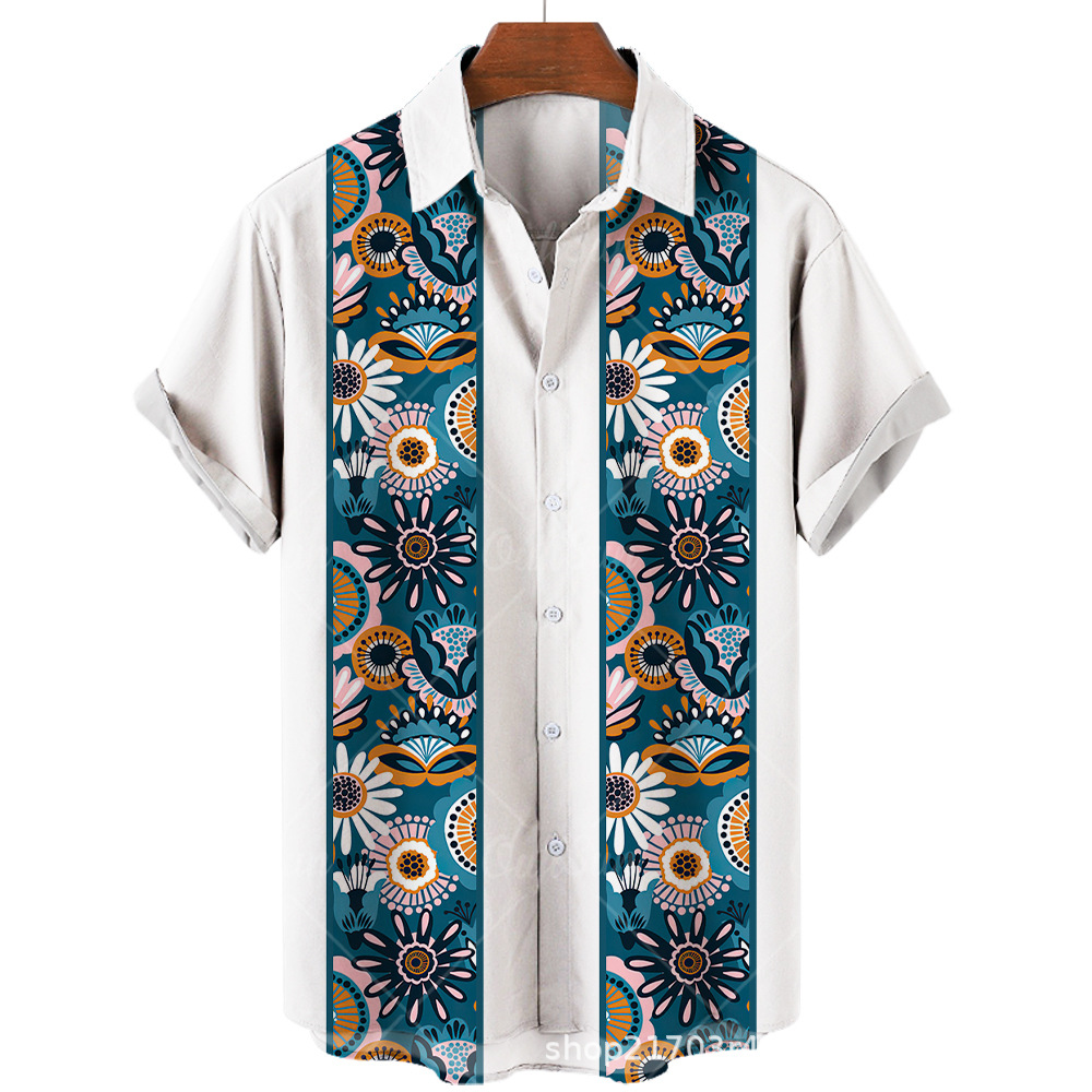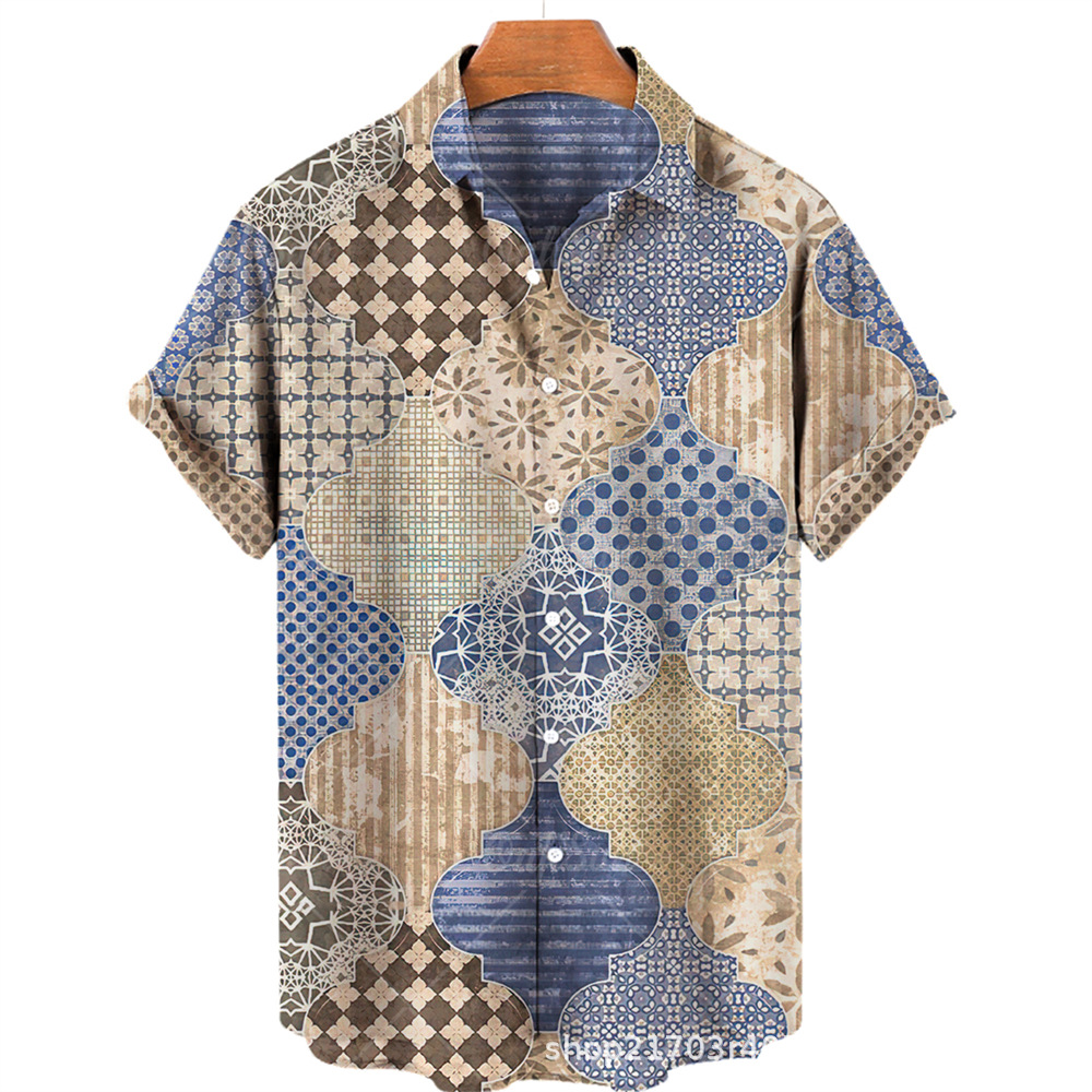 2024 국경 대외 무역 새로운 복고풍 컬러 패턴 시리즈 3D 느슨한 캐주얼 남성 셔츠스토어 가기