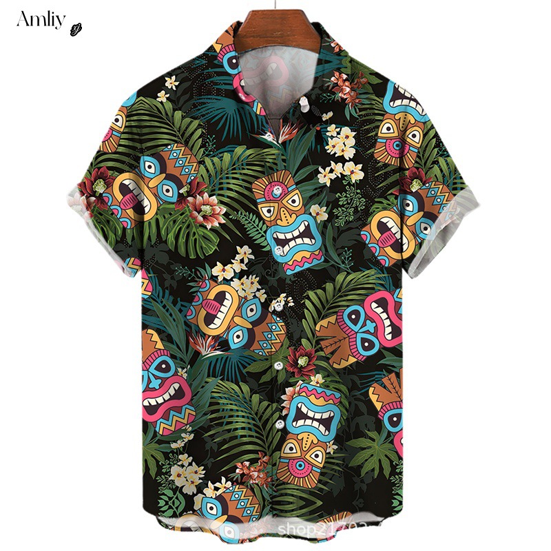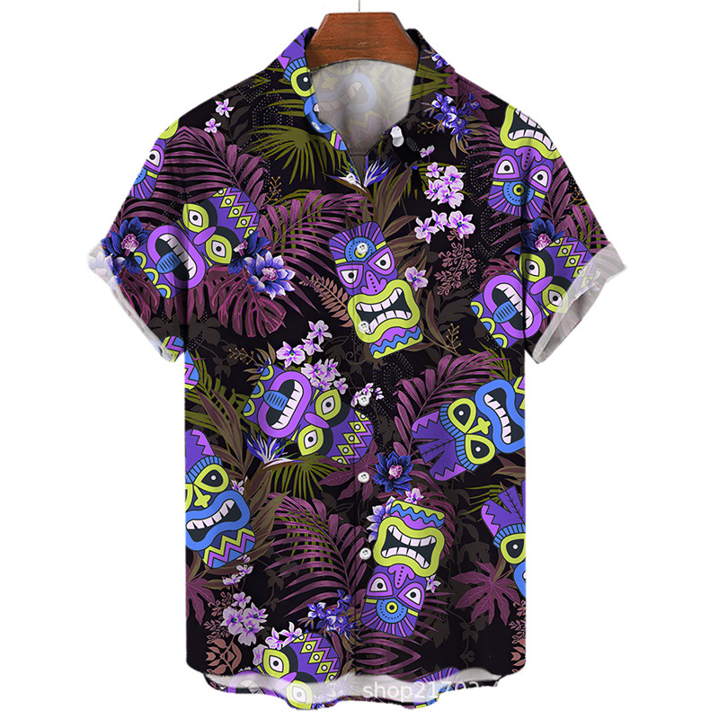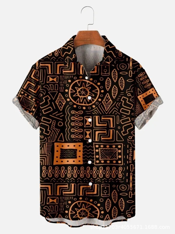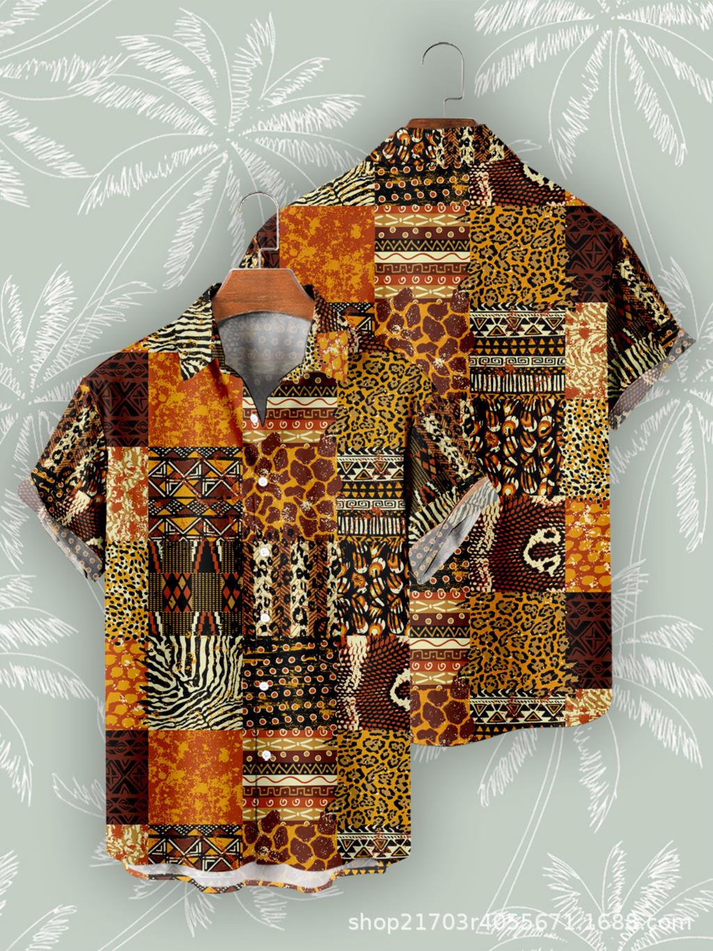 2024 국경 대외 무역 새로운 복고풍 컬러 패턴 시리즈 3D 느슨한 캐주얼 남성 셔츠스토어 가기