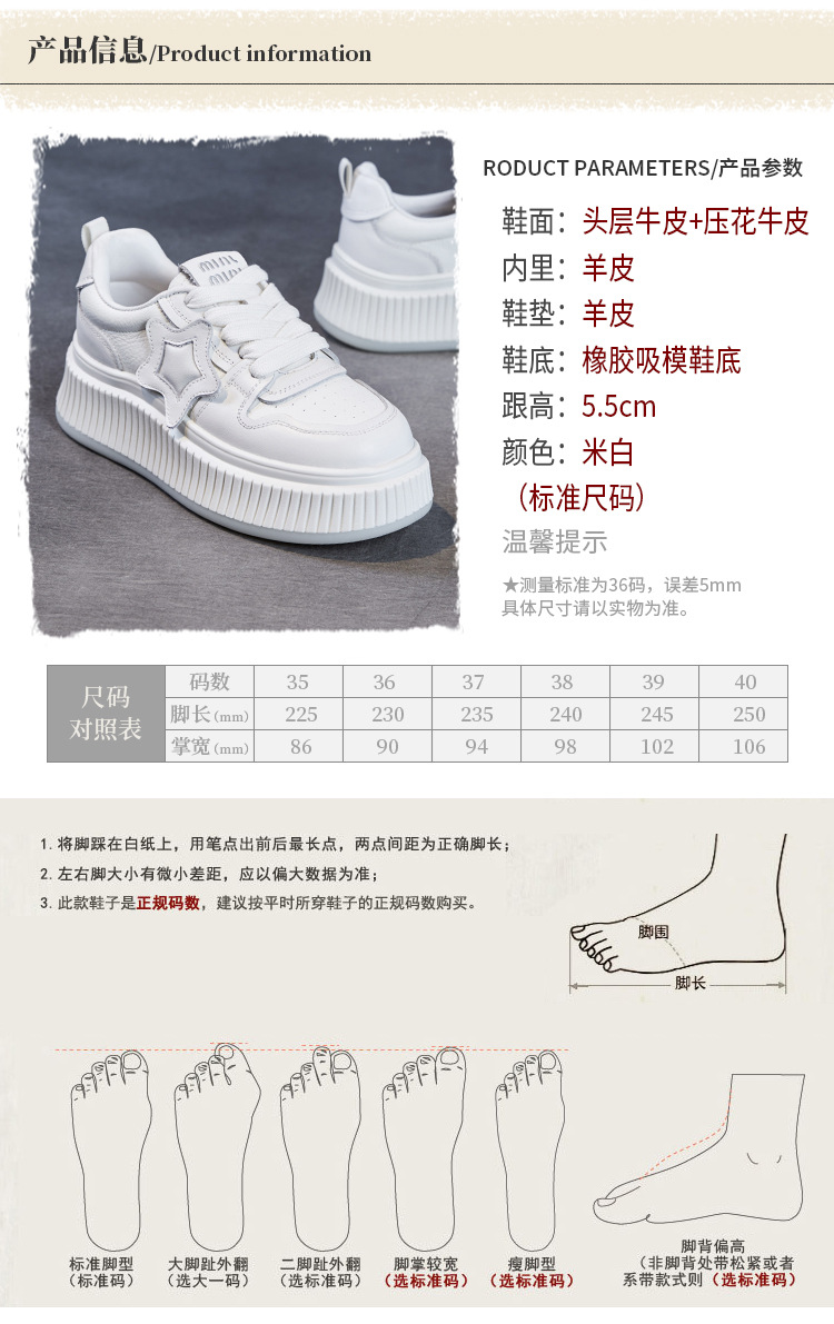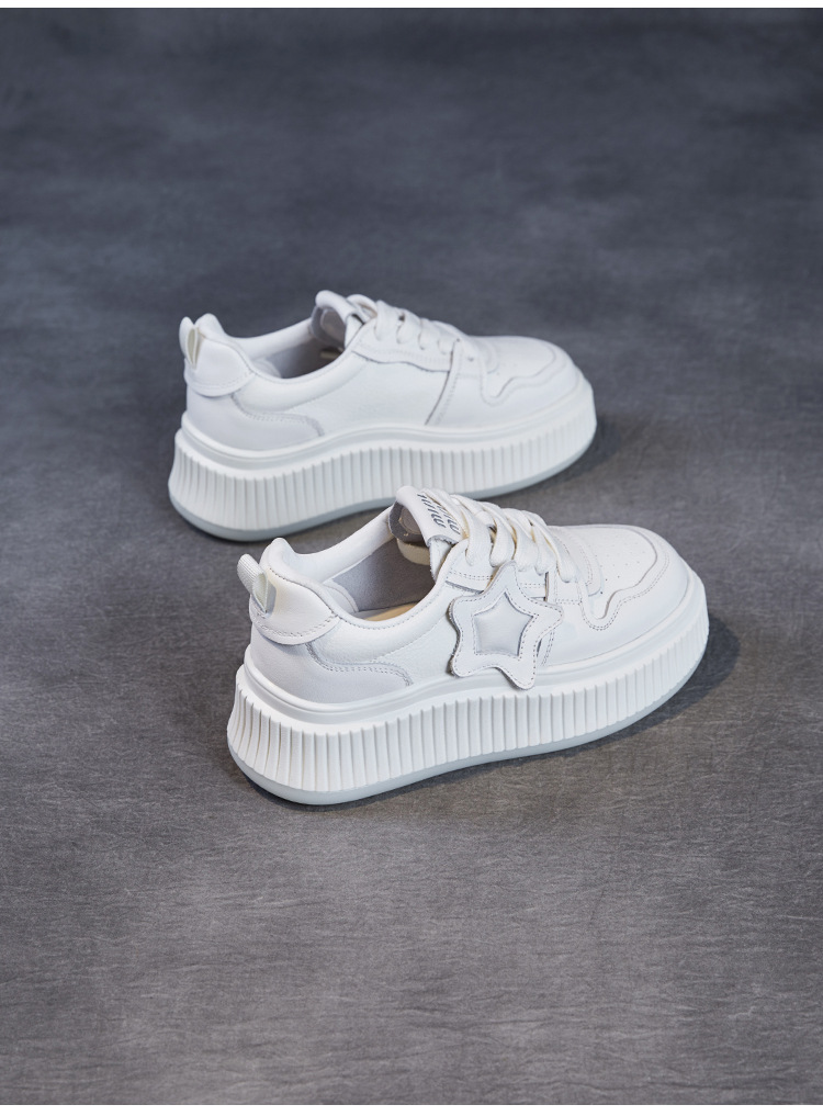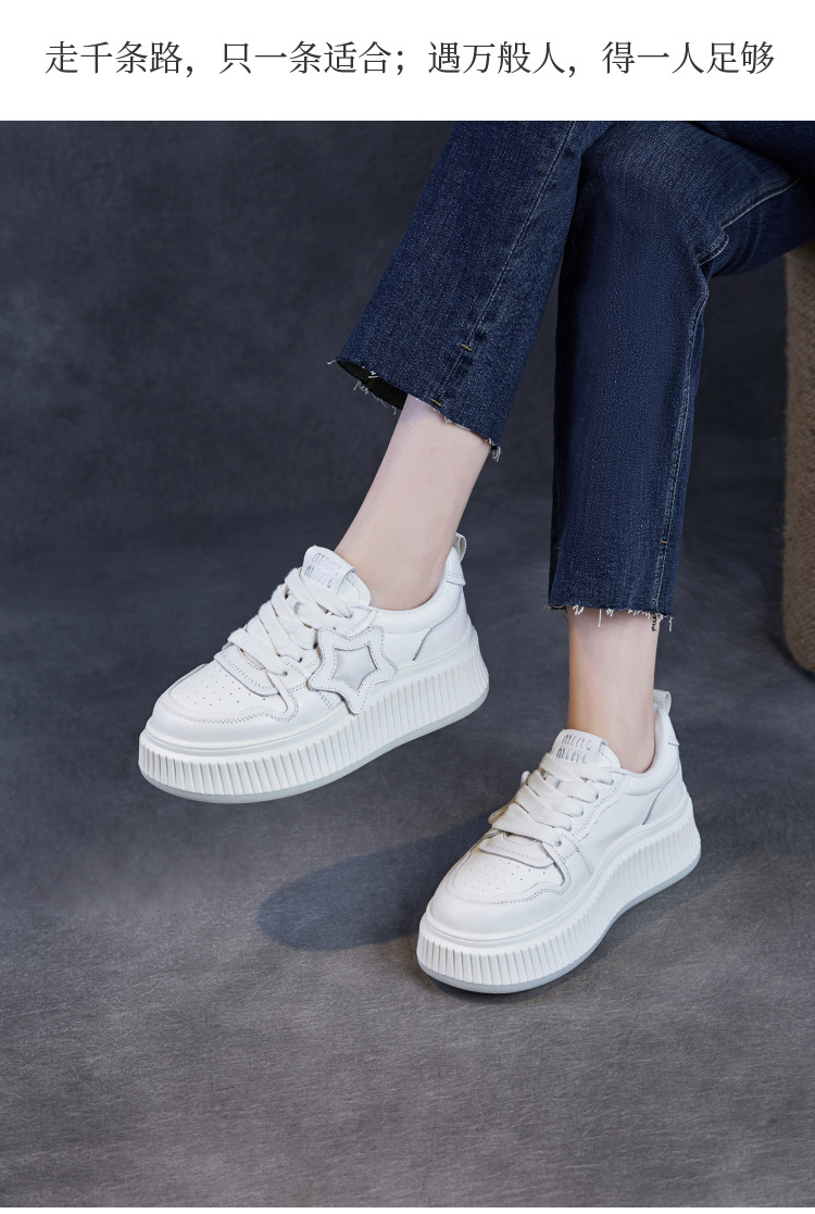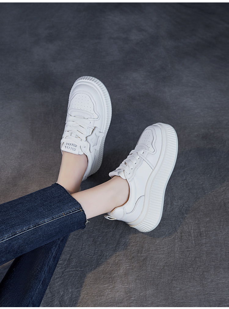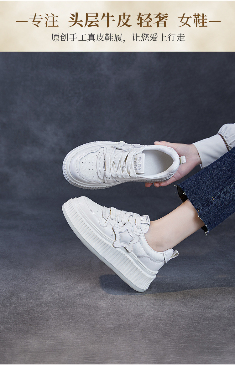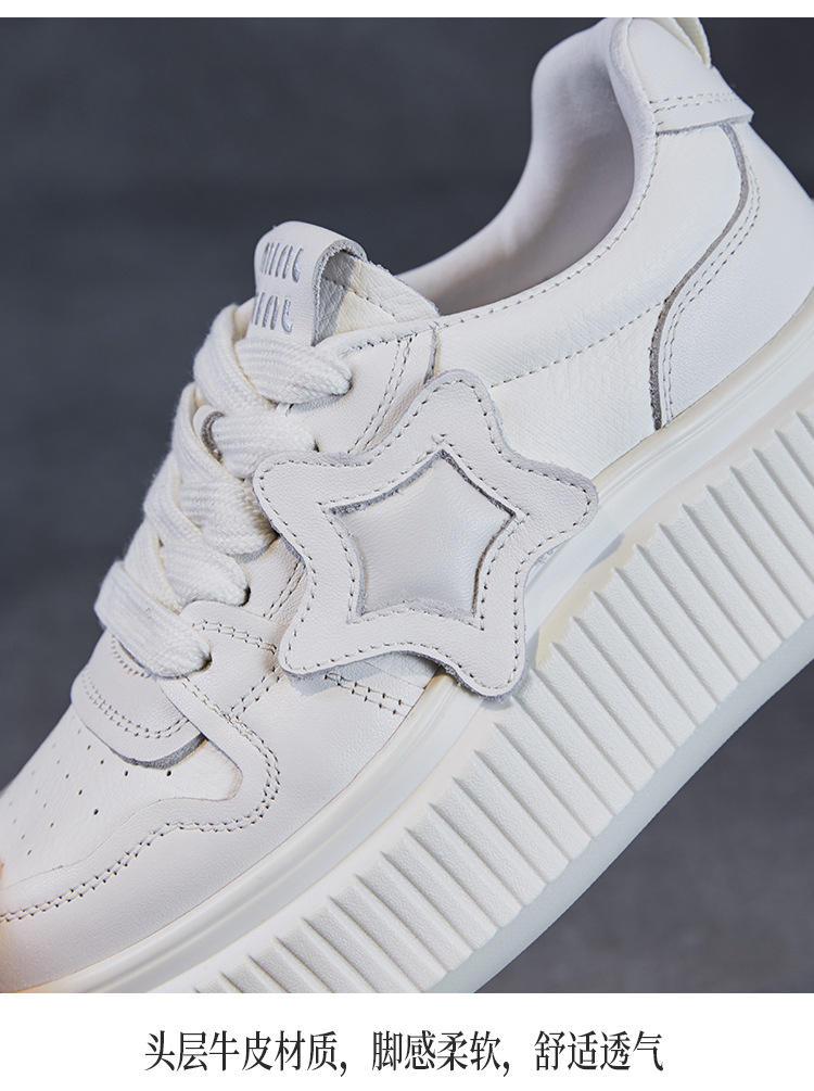 미국 천연 색상 2025 봄 새로운 가죽 흰색 신발은 작은 사람들을위한 여성의 두꺼운 통기성 캐주얼 운동화 증가스토어 가기