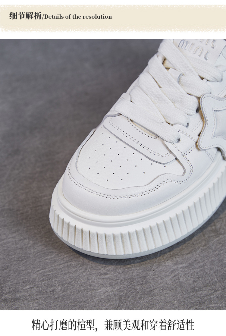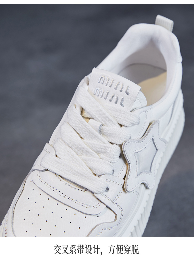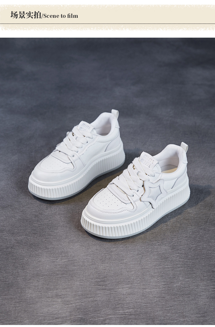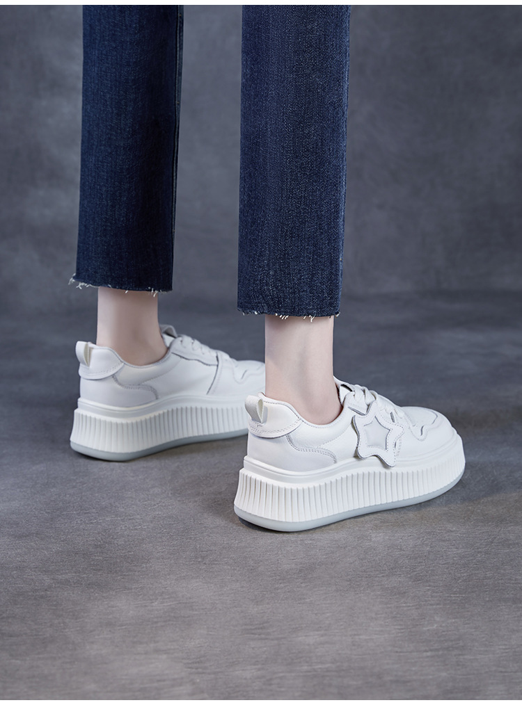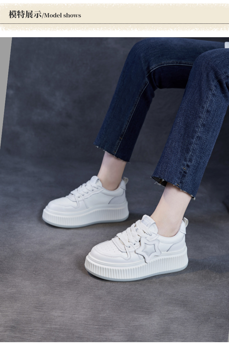 미국 천연 색상 2025 봄 새로운 가죽 흰색 신발은 작은 사람들을위한 여성의 두꺼운 통기성 캐주얼 운동화 증가스토어 가기