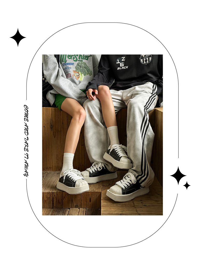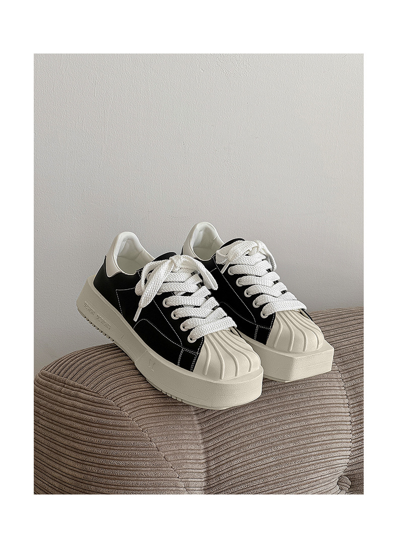 봄 2025 새로운 데님 통기성 트렌디 스니커즈 오픈 스마일 캔버스 슈즈 캐주얼 슈즈 두꺼운 단독 올매치 스니커즈스토어 가기