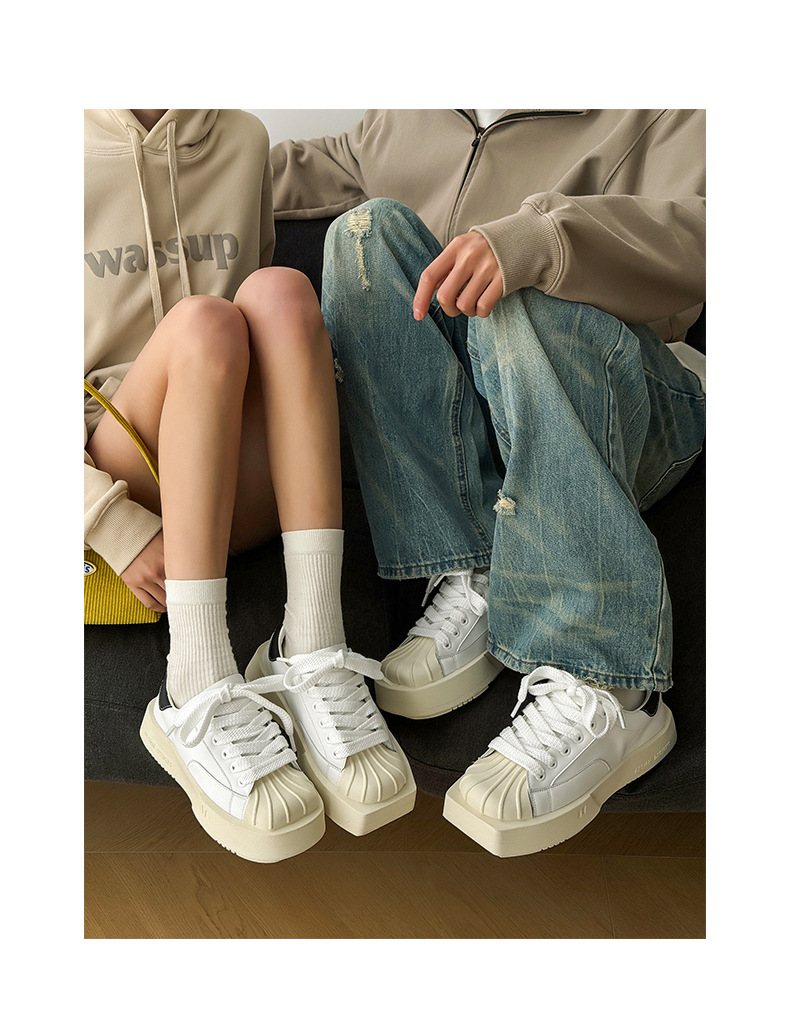 봄 2025 새로운 데님 통기성 트렌디 스니커즈 오픈 스마일 캔버스 슈즈 캐주얼 슈즈 두꺼운 단독 올매치 스니커즈
