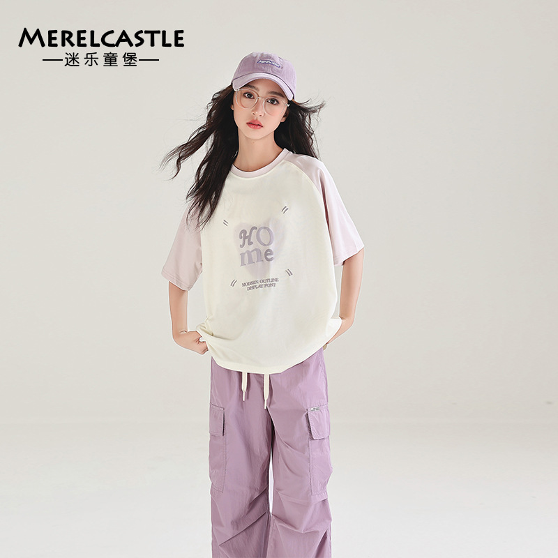 여자 반팔 티셔츠 여름 2025 새로운 스타일 중학교 소녀 여름 탑 걸스 빅 보이 유행 브랜드 티셔츠 세트스토어 가기