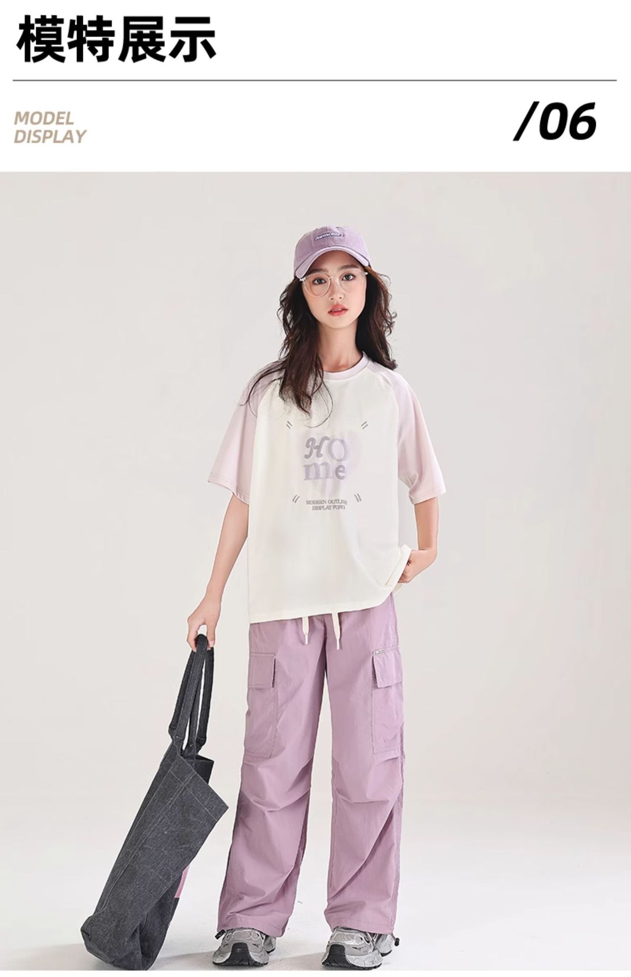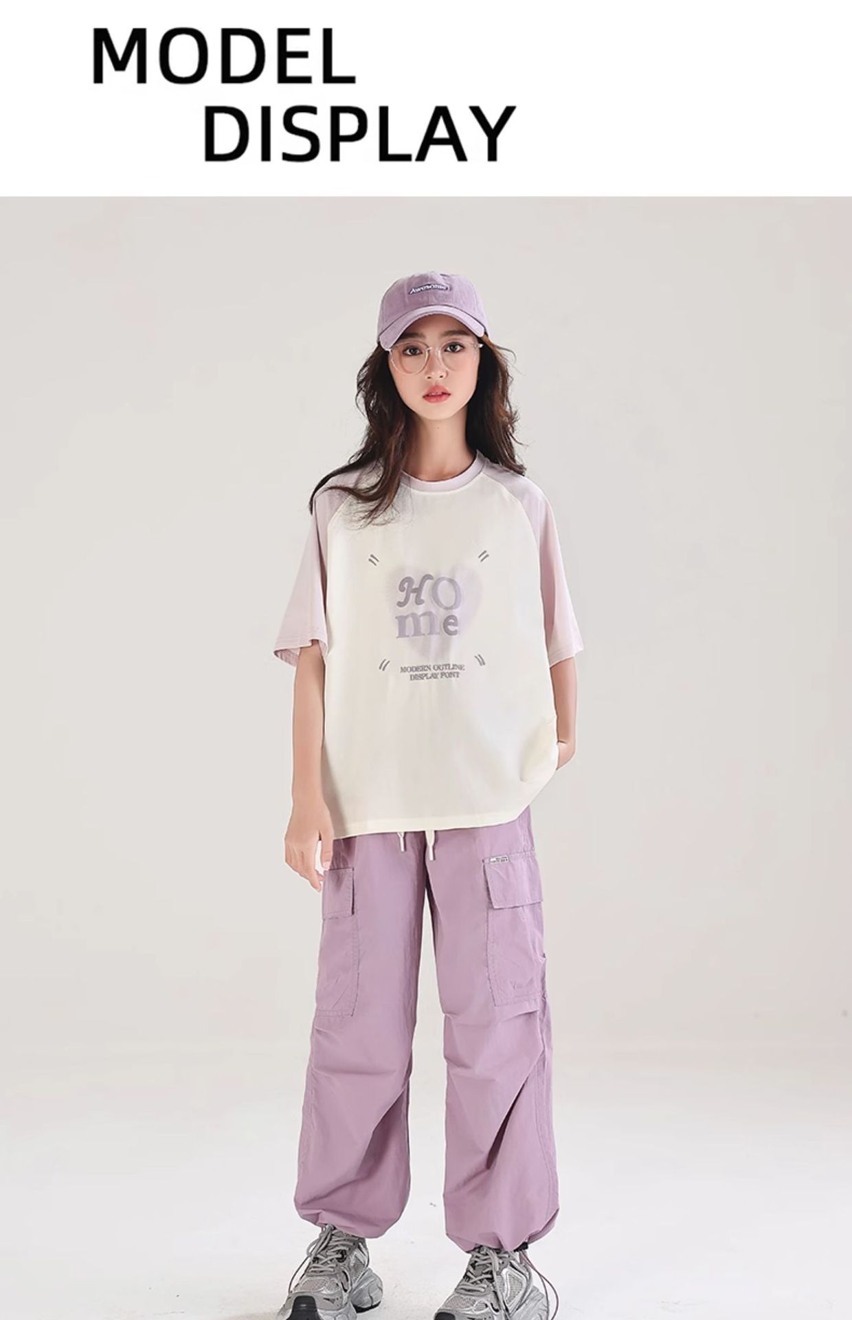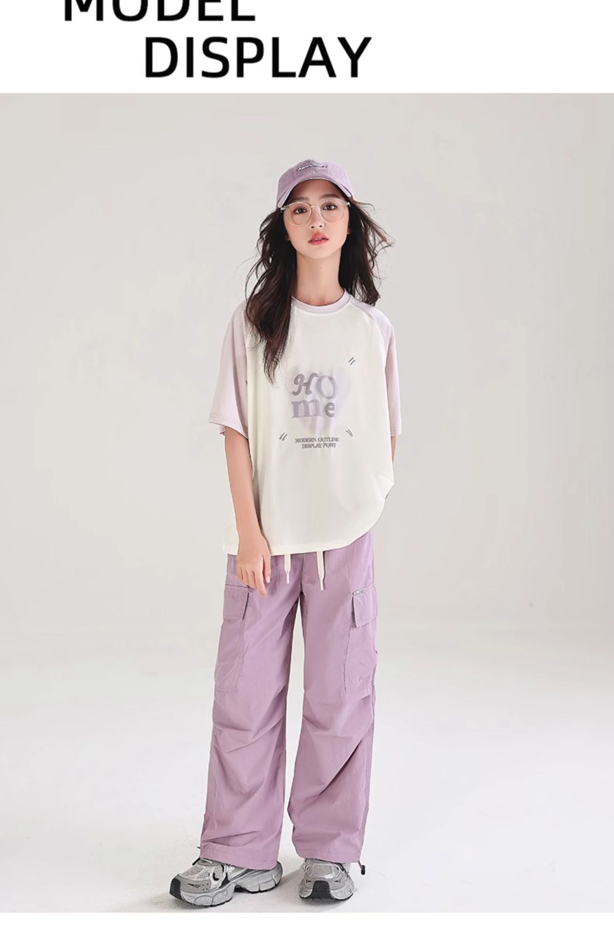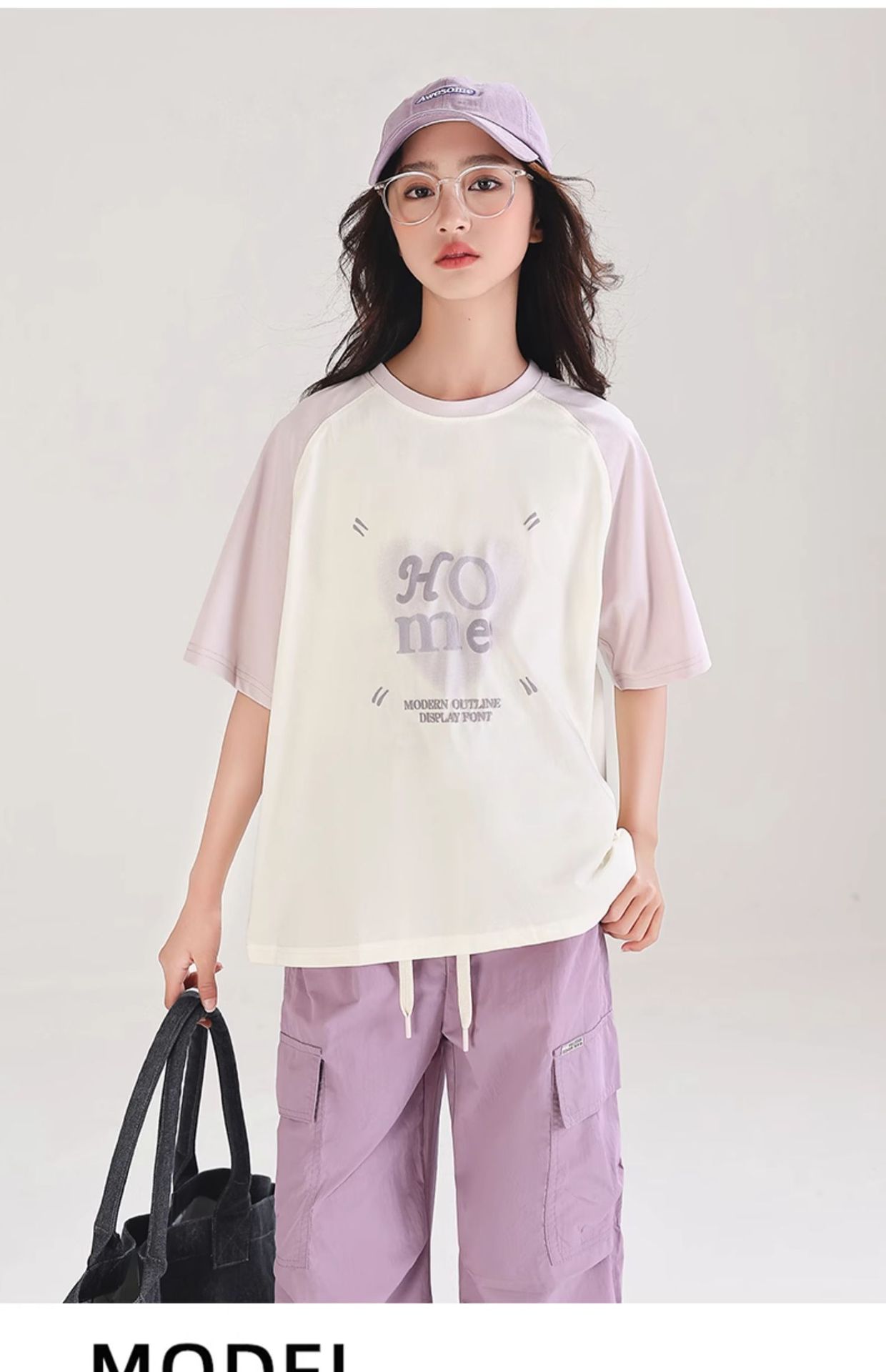 여자 반팔 티셔츠 여름 2025 새로운 스타일 중학교 소녀 여름 탑 걸스 빅 보이 유행 브랜드 티셔츠 세트