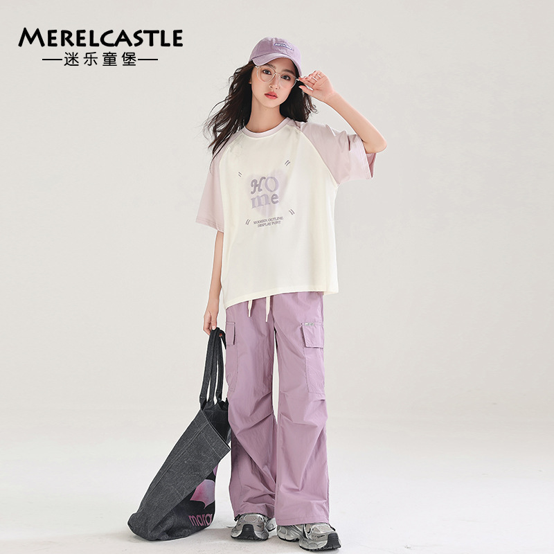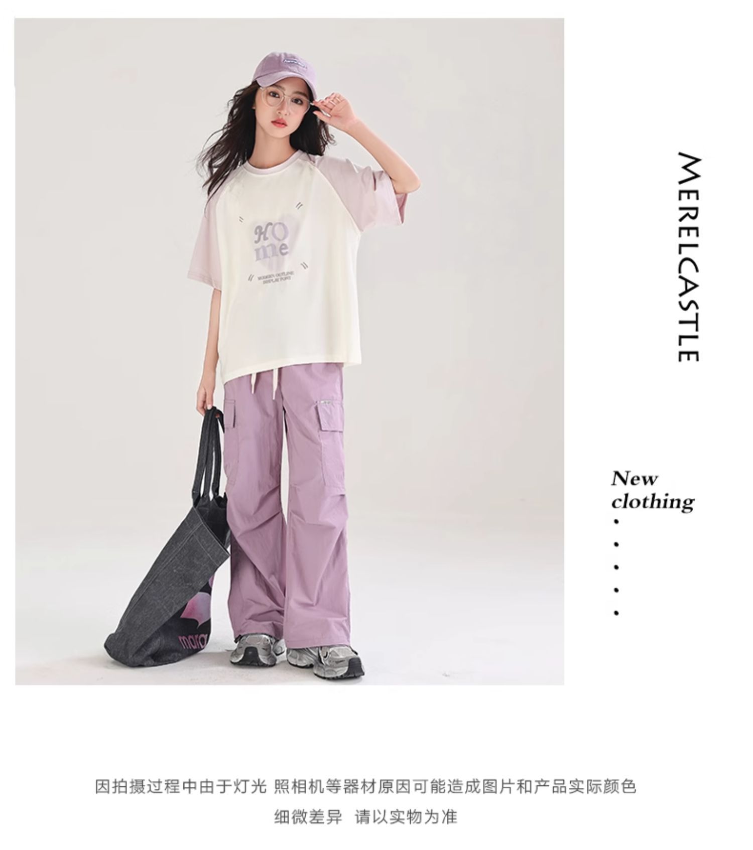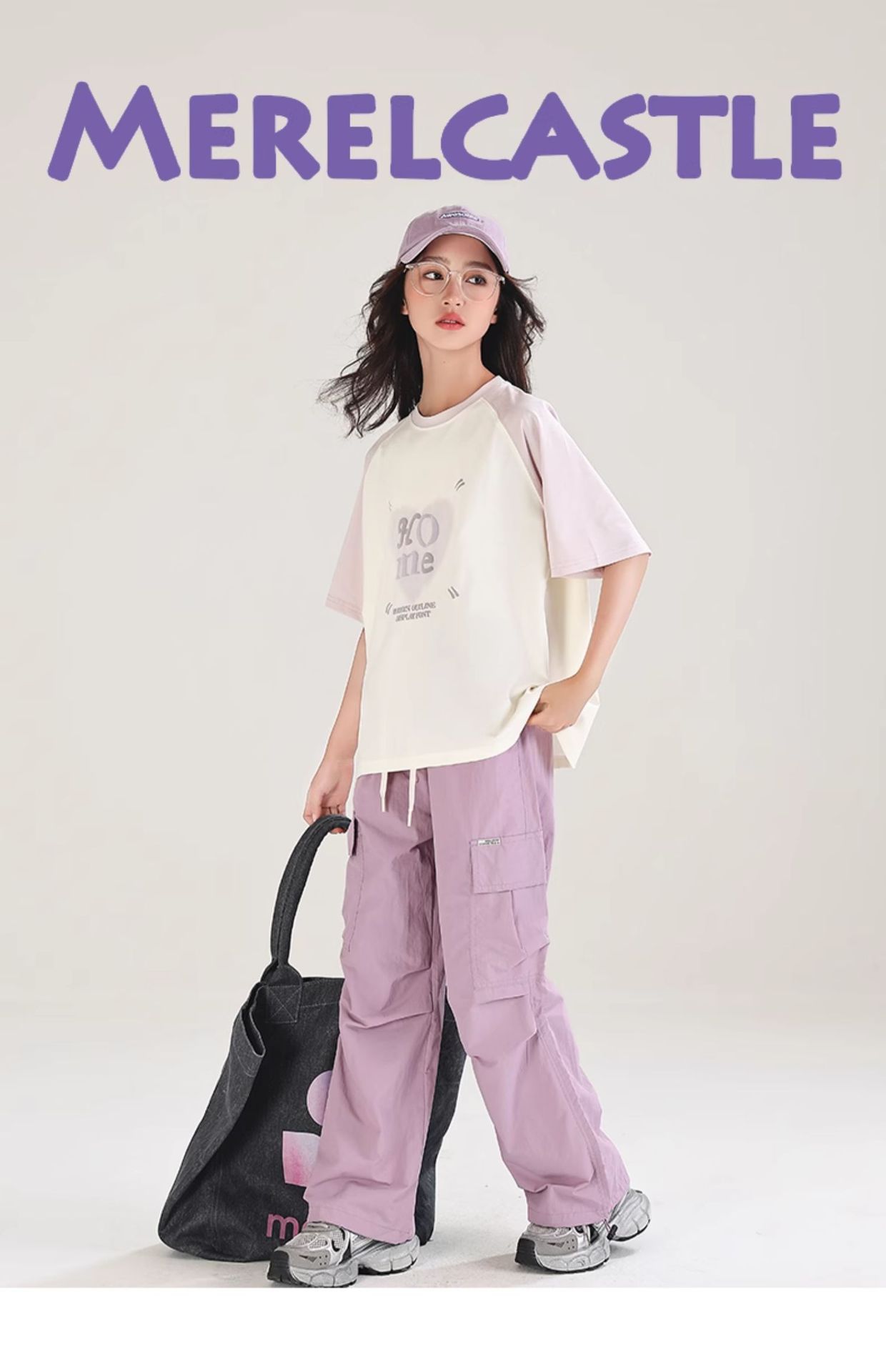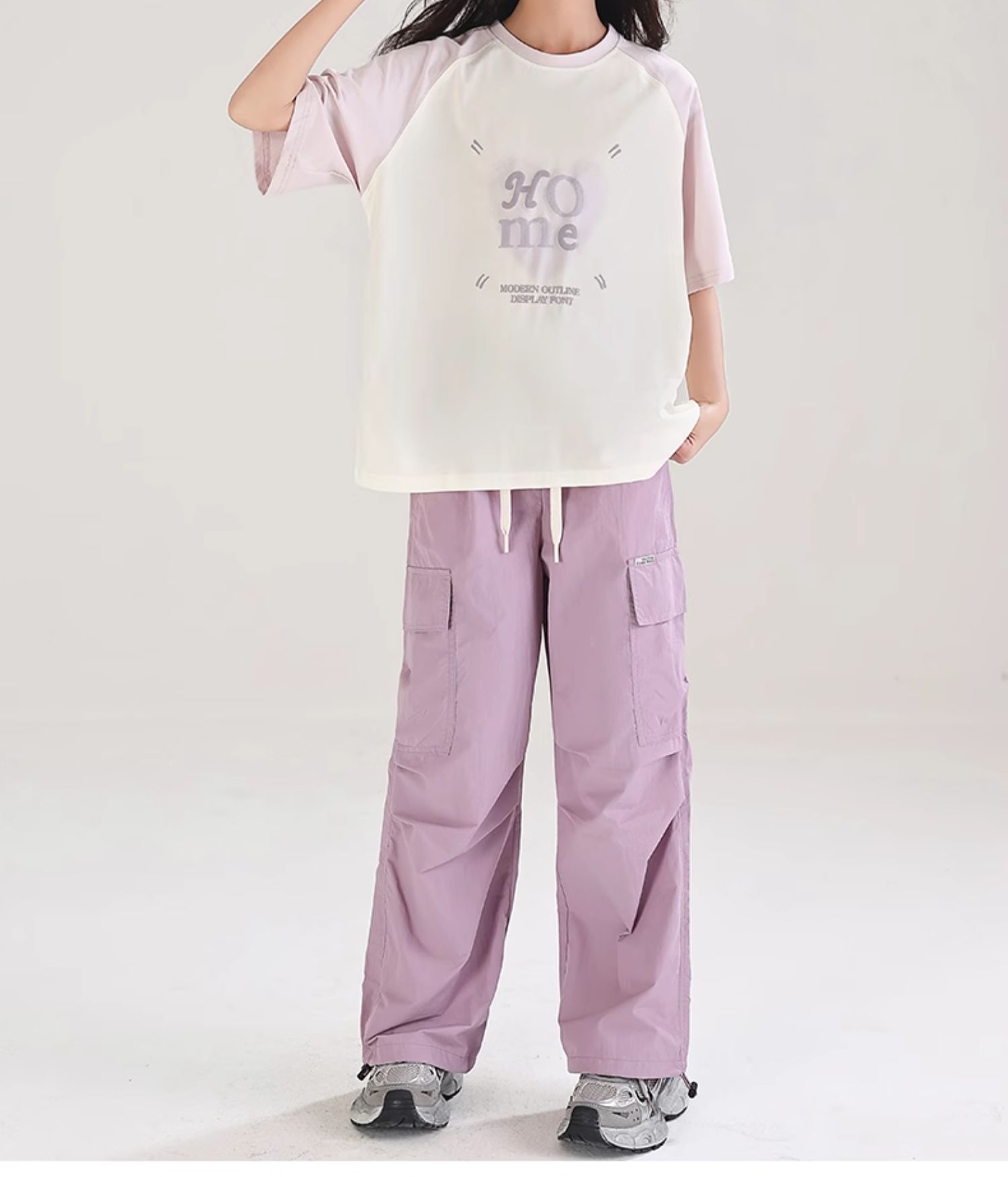 여자 반팔 티셔츠 여름 2025 새로운 스타일 중학교 소녀 여름 탑 걸스 빅 보이 유행 브랜드 티셔츠 세트