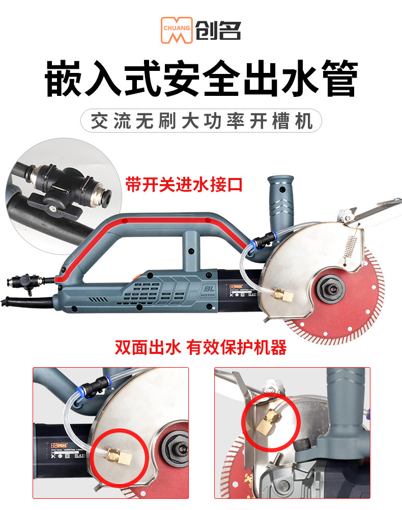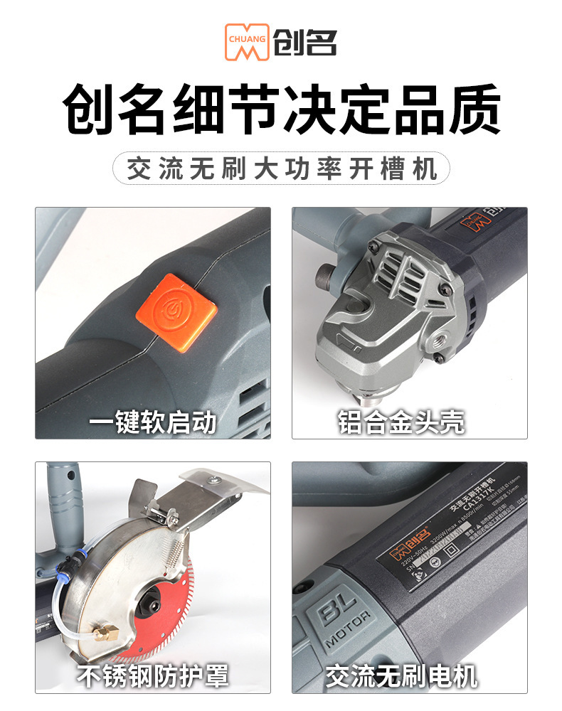 Chuangfamic 브러시리스 슬롯 머신 새로운 물 및 전기 라인 슬롯 먼지가없는 벽 모 놀리 식 유물 고출력 절단 기계 콘크리트스토어 가기