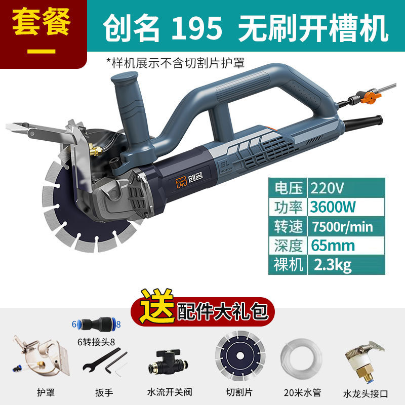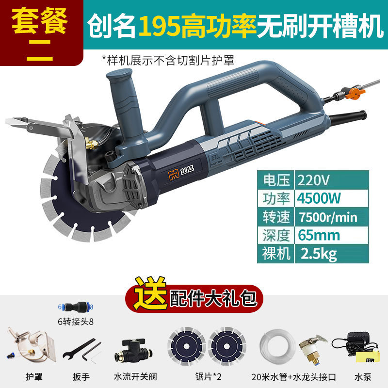 • 195 물 및 전기 특수 슬로팅 머신 패키지 1개 3800W 깊은 절단 65mm 톱날 1개 + 20m