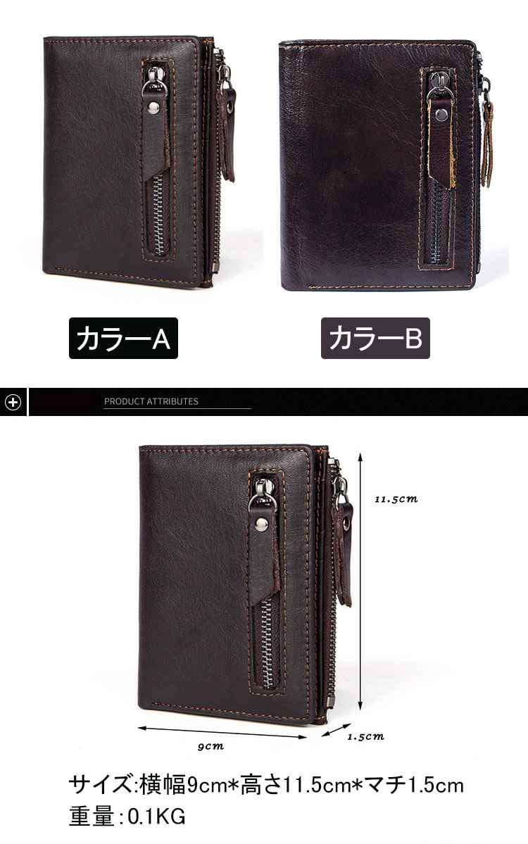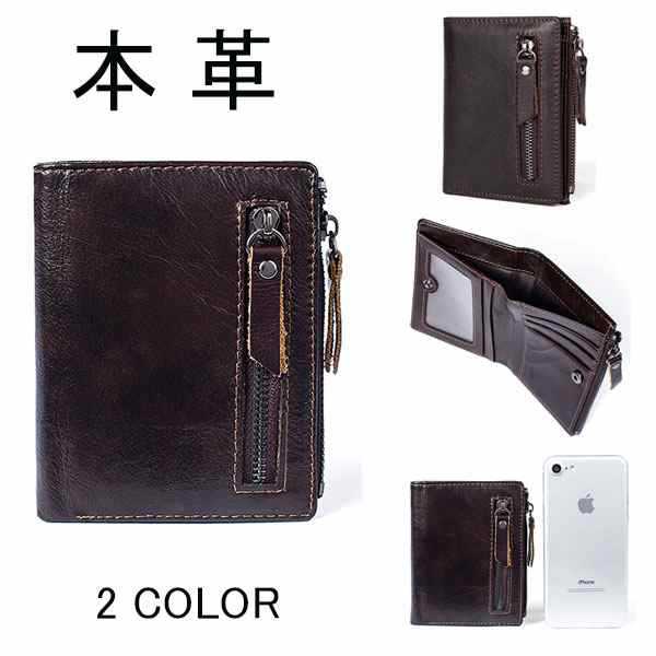 빈티지 남성용 가죽 캐주얼 지갑 오일 왁스 카우 히데 2 배 짧은 지갑 카드 가방 변경 지퍼 가방 지갑스토어 가기