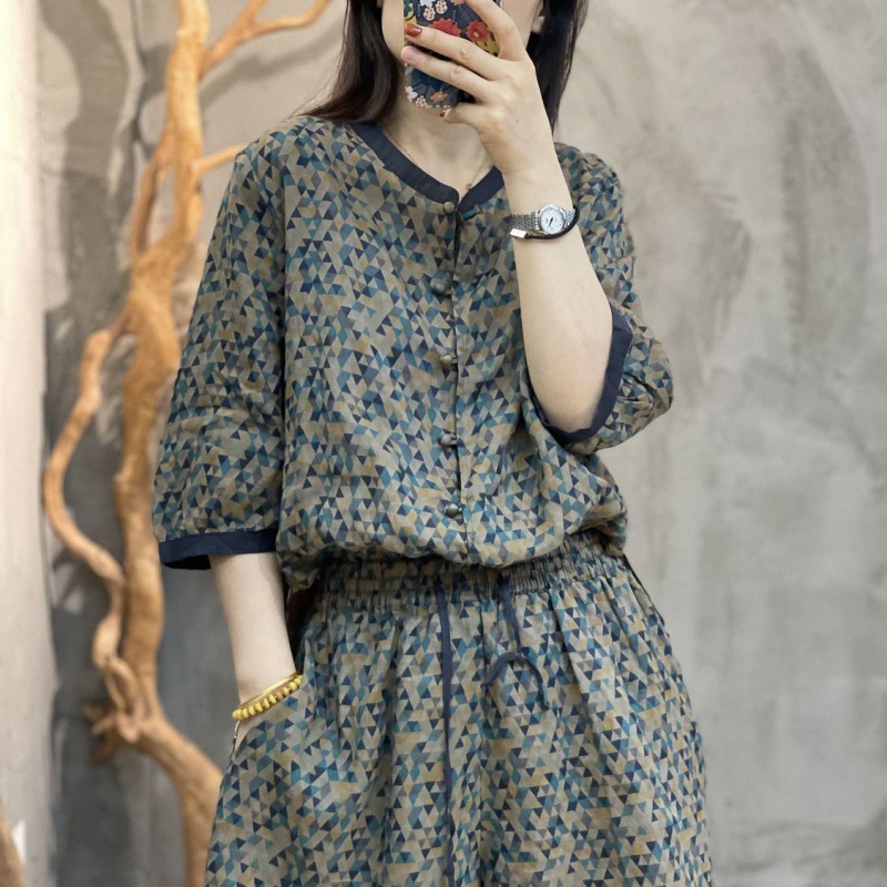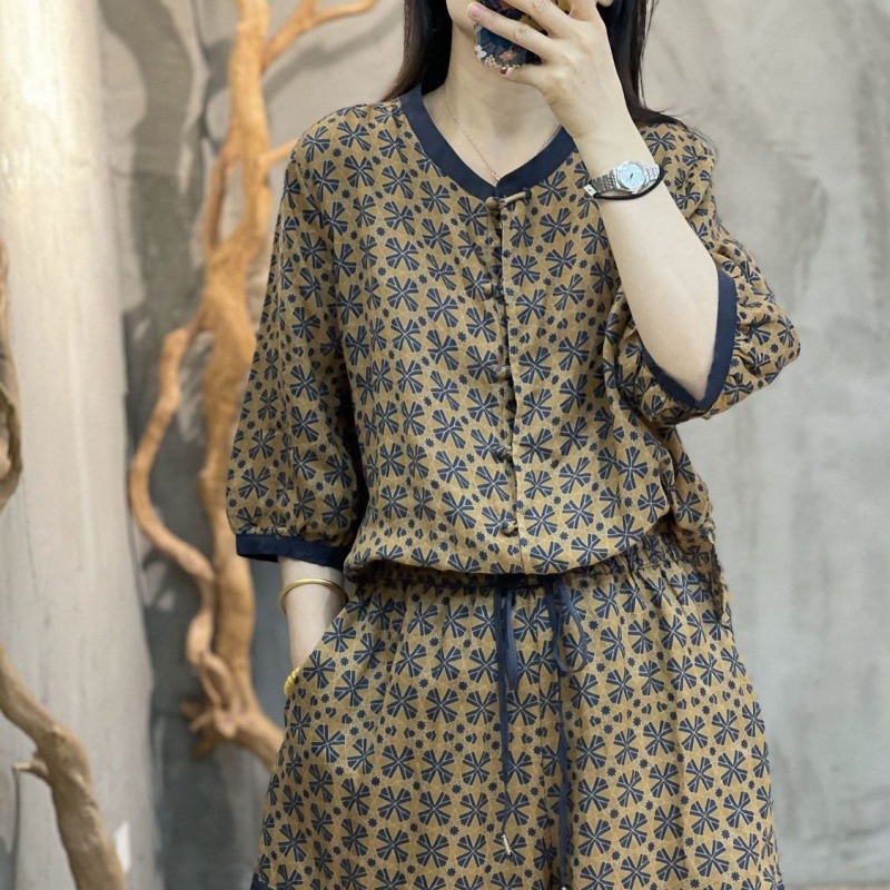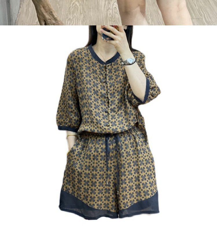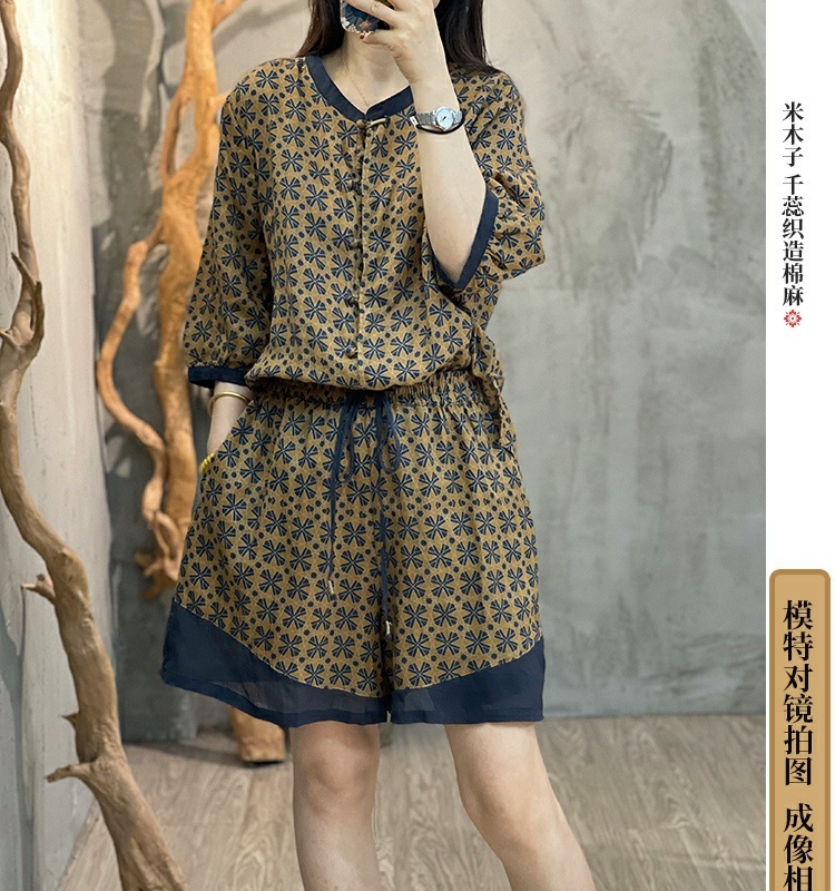 예술적 라미 반팔 점프 수트 여성 2024 여름 여성 의류 점프 수트 서양식 얇은 느슨한 반바지 여성 여름스토어 가기