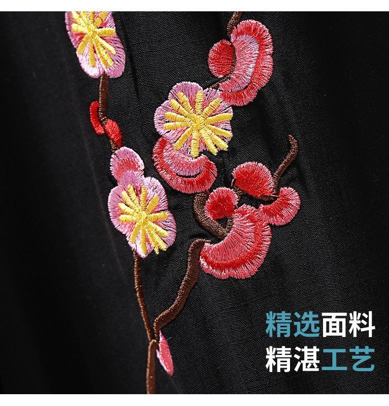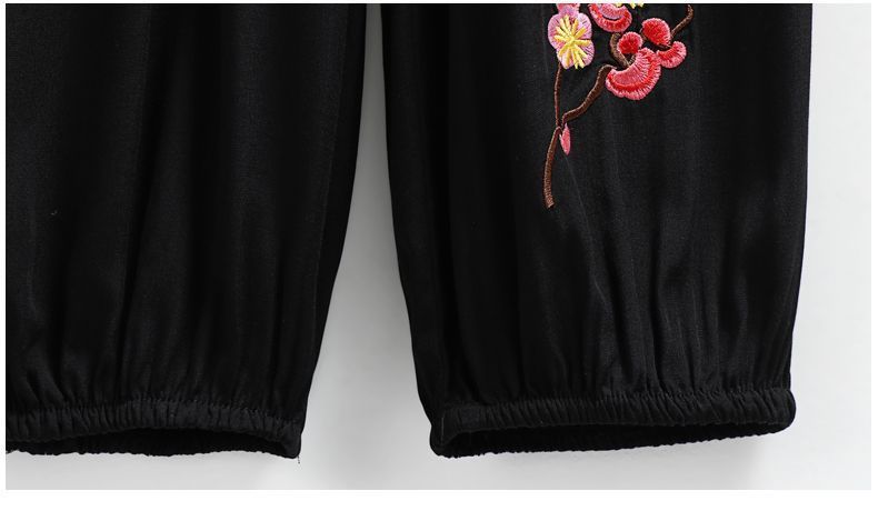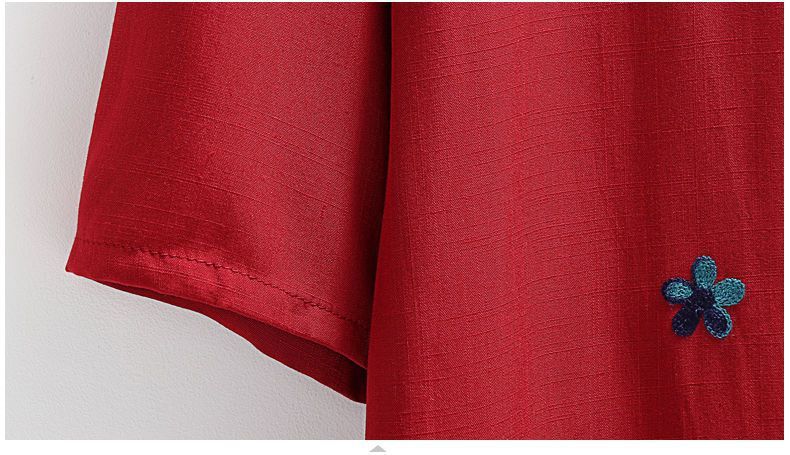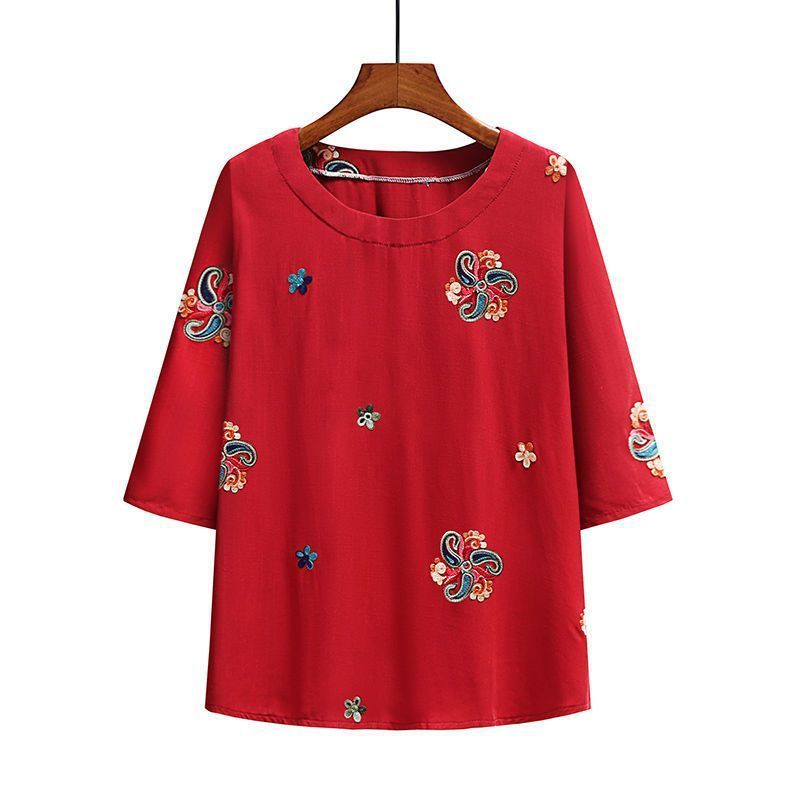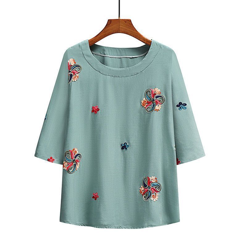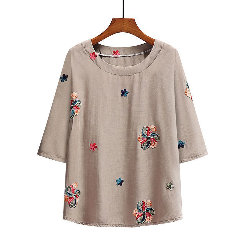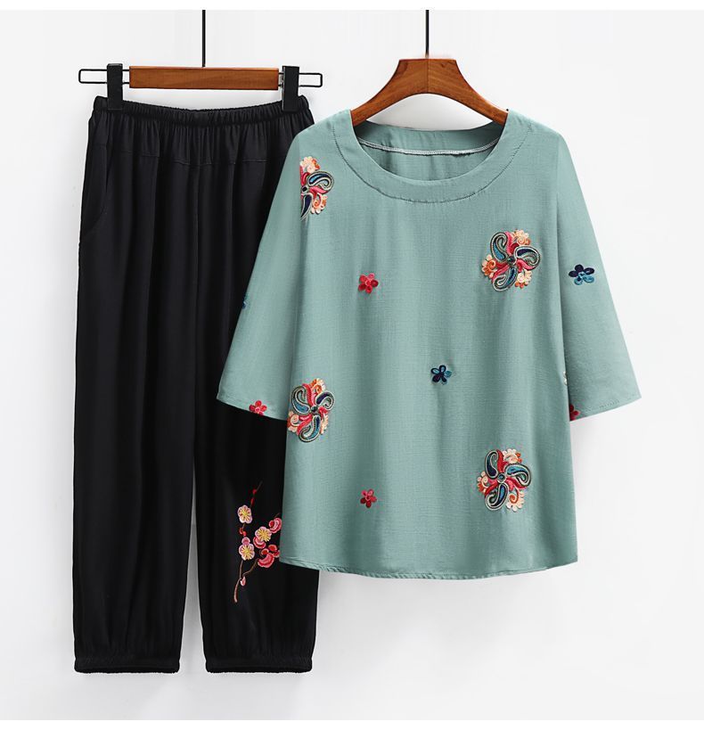 여름 코튼 리넨 중년 및 노인 플러스 사이즈 여성 의류 민족 스타일 자수 세븐 슬리브 티셔츠 세트 어머니 웨스턴 스타일 탑스토어 가기