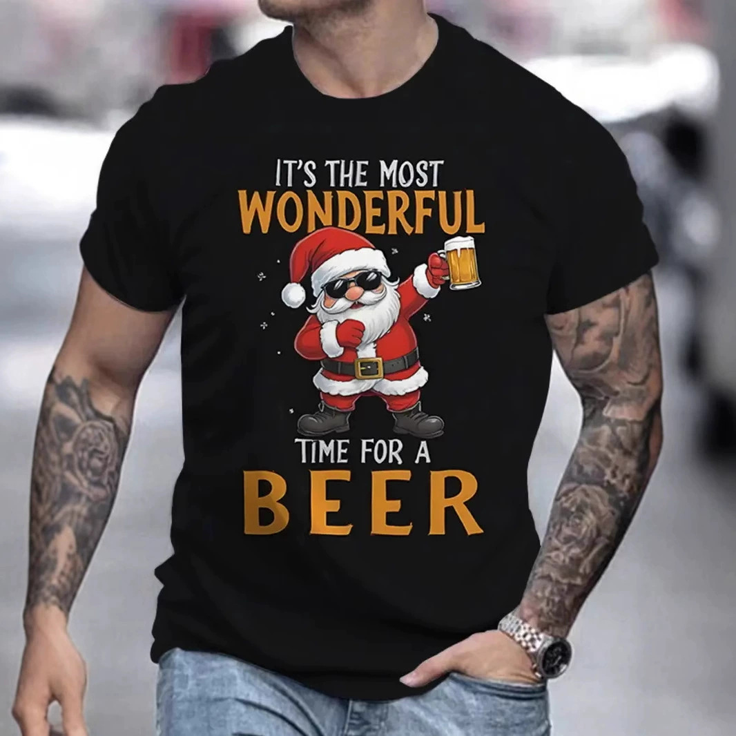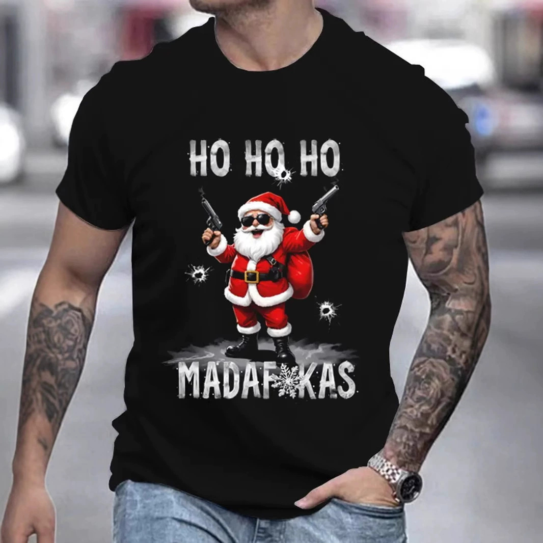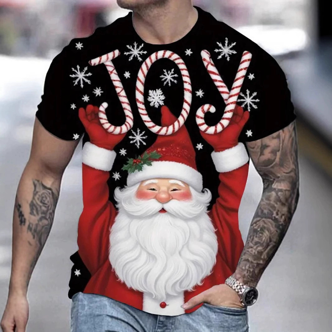 2025 새로운 3D 크리스마스 인쇄 남자의 짧은 소매 거리 필수
