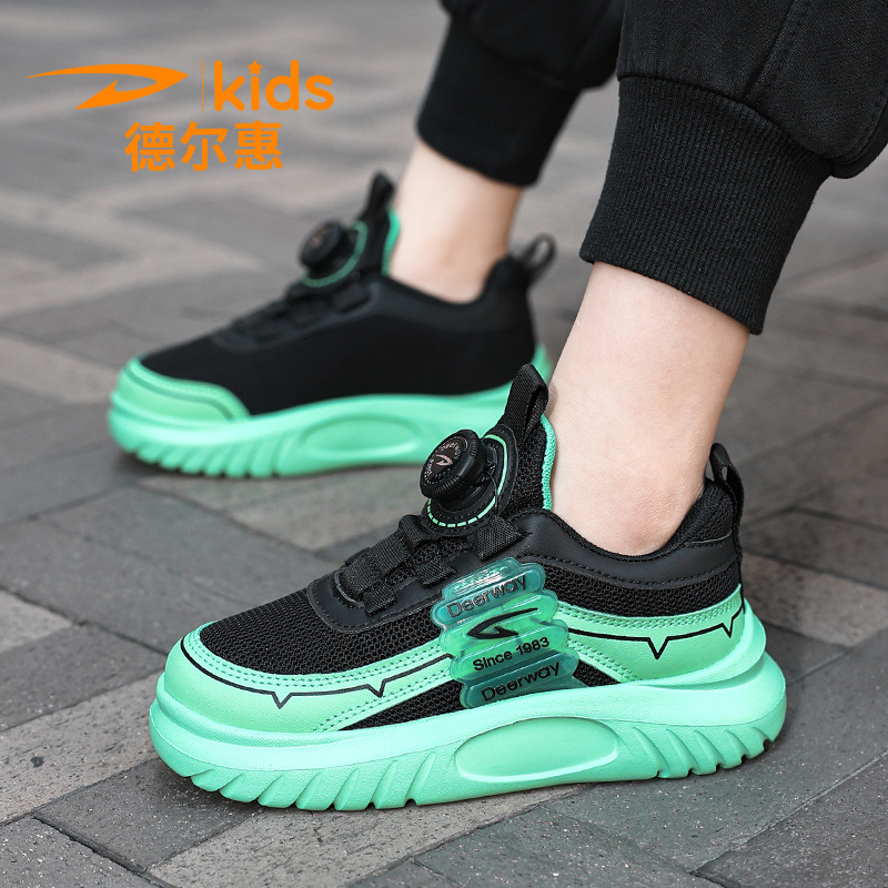 Delhui 통기성 어린이 신발 2025 봄과 가을 새로운 메쉬 운동화 소년 학생 소녀 버튼 신발스토어 가기